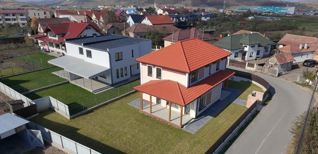 Casa individuala Apahida localizare centrala aproape de statie de autobuz magazine scoala Primarie 4 dormitoare bucatarie separata living 2 spatii de depozitare 1 dressing 3 bai cu geam hol intrare Constructie noua 2025 regim inaltime P 1etaj constructie caramida izolatie exterioara polistiren extrudat 20cm tencuiala decorativa Oskar siliconata acoperis Tigla tamplaria pvc culoare stejar inchis 7 camere geam termopan 3 sticle Salamander Incadramente decorative la geamuri si colturi caramida feliata protejata cu lac Incalzirea prin pardoseala Rehau parter si etaj acces in pod cu scara retractabila Suprafata totala teren 601 mp suprafata utila 152 21 mp parter 78 27 mp etaj 73 94 mp la care se adauga podest intrare 4 61 mp Terasa cu fundatie si acoperita cu lemn si tigla 20 45 mp Racordata la utilitati apa canal gaz curent si contoare montate apa gaz curent Put colectare apa pluviabila prin subteran de la jgheaburi Jgheaburi din aluminiu fara imbinari Stadiul interior pereti tencuiti si cu 2 straturi de glet instalatii electrice sanitare termice sape Compartimentare -Parter hol spatiu depozitare baie cu geam birou/dormitor spatiu tehnic loc sub casa scarii living bucatarie separata -Etaj 3 dormitoare 2 bai dressing casa scarii si acces usa retractabila in pod Dormitor cu baie cu geam separat dressing cu geam Acces pietonal realizat din fundatie de beton si aplicata caramida aparenta usa execuatata pe comanda Acces auto lungime de 5 m mecanism sina Gard cu fundatie din beton placat partial cu caramida aparenta inaltime aprox 1 8 h front total stradal 48ml parcela este situata pe colt Suprafata pavata 95 mp include acces auto acces pietonal imprejurul casei La cerere se pot oferi poze cu toate fazele de constructie si traseele instalatiilor electrice Pret de vanzare 335 000 euro proprietar persoana fizica si nu are tva casa nu a fost construita in scop comercial Se intermediaza Exclusiv prin Agentia Record Imobiliare comision 2 nu se aplica tva