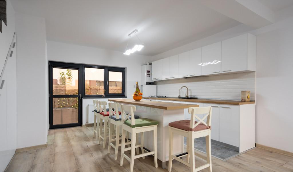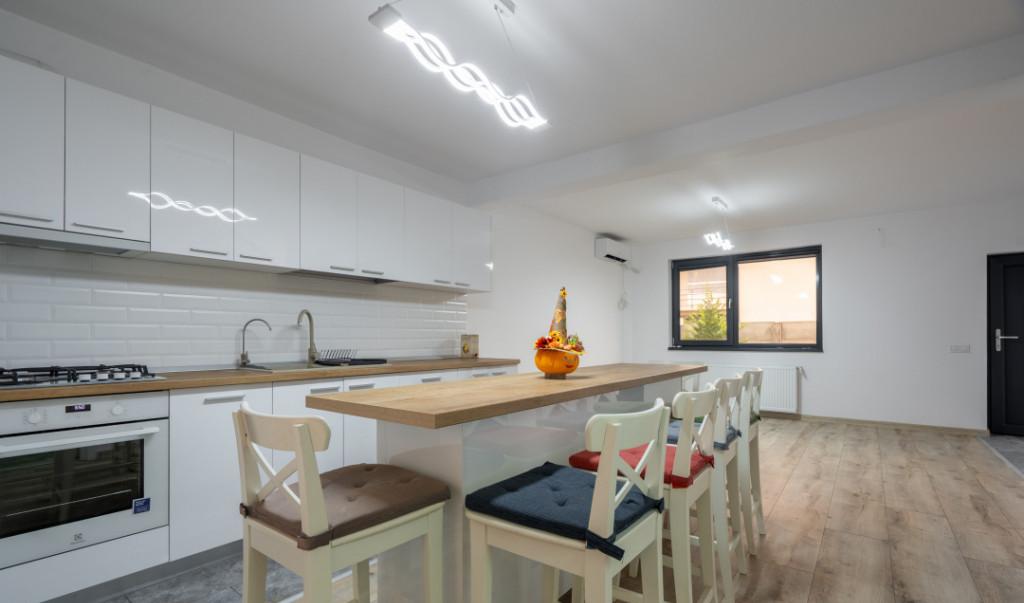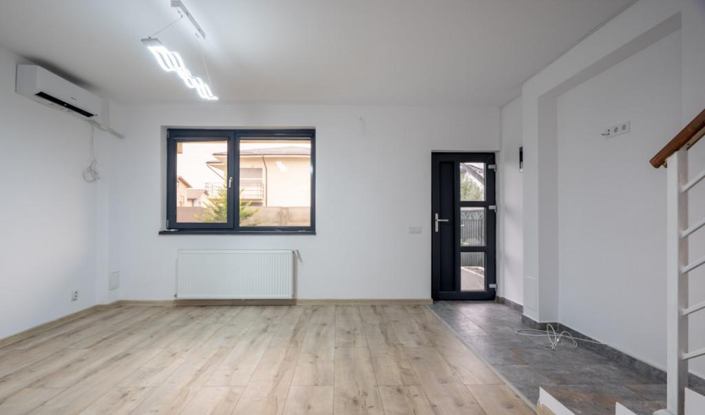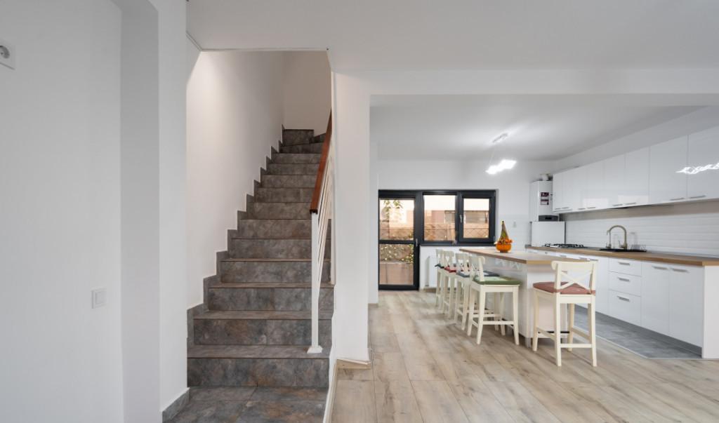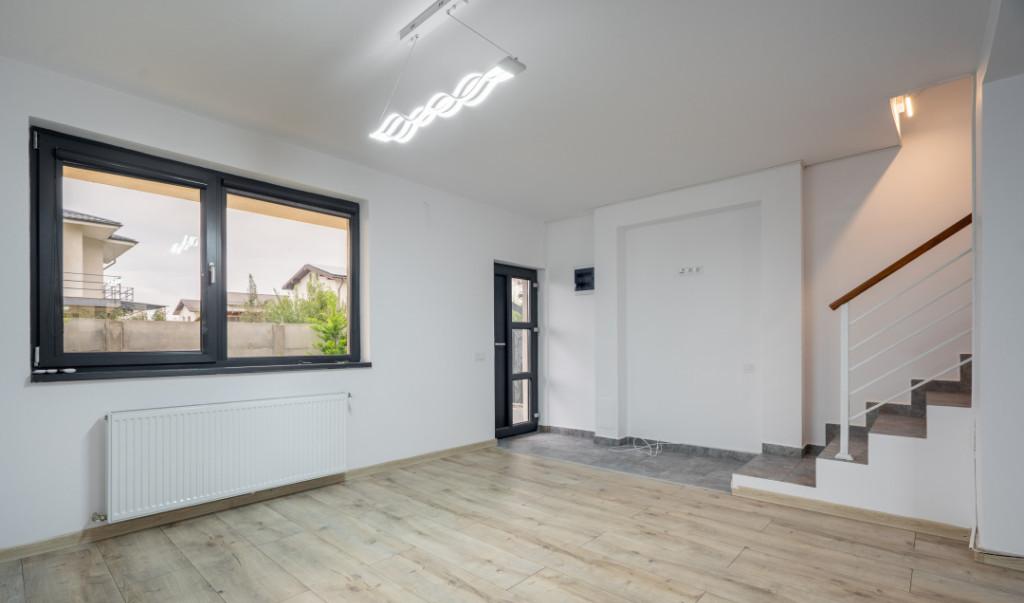 Vila moderna cu 4 camere in Tunari - Confort si eleganta aproape de Bucuresti Descopera aceasta vila eleganta situata in Tunari perfecta pentru cei care isi doresc liniste si confort dar cu acces rapid catre oras Proprietatea este dispusa pe parter si etaj si ofera un spatiu generos ideal pentru o familie Vila are 4 camere dintre care 3 dormitoare unul fiind amenajat ca birou dar usor de transformat inapoi in dormitor in functie de nevoi Bucataria open-space creeaza un ambient modern si primitor iar cele 3 bai una dintre ele fiind transformata in dressing cu posibilitatea de a reveni la o baie functionala asigura confort pentru toti membrii familiei Locuinta este construita cu finisaje premium avand pereti placati cu ardezie care ofera un aspect elegant si un plus de durabilitate Tamplaria Salamander Tripan asigura o izolare termica si fonica excelenta iar pentru un plus de siguranta si intimitate vila este dotata cu rulouri PVC la geamurile de la p...