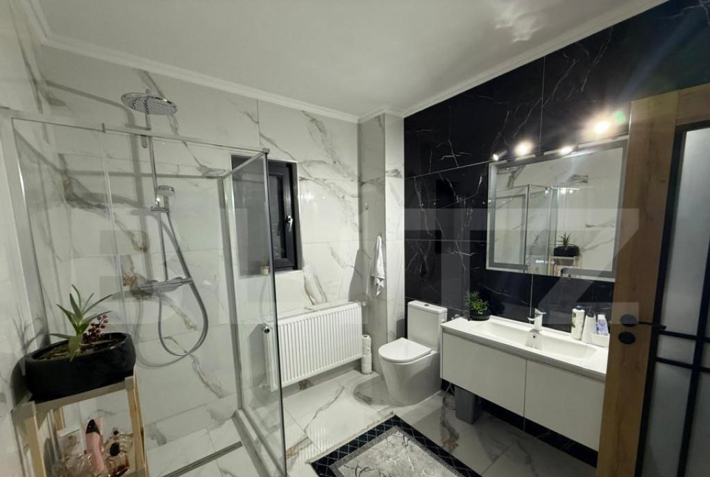 Blitz va propune spre vanzare o casa moderna cu regim de inaltime P 1E pod construita in 2004 cu doua randuri de caramida porotherm Suprafata de teren este de 10 ari 1000 de metri patrati Casa are 193 mp utili si este complet renovata la interior totul nou calitate superioara tencuieli termopane 7 camere /3 sticle usi exterioare si interioare instalatii sanitare noi bai parchet lemn masiv triplustratificat granit instalatii centrala gaz calorifere Mobila este facuta pe comanda noua din lemn masiv si MDF Supraveghere video gard de piatra si fier Este izolata exteior Dispune de 4 dormitoare 2 bai 1 living 1 bucatarie cu mobila si electrocasnice noi 3 balcoane 1 beci sub casa Incalzire cu centrala pe gaz dar dispune si de o centrala pe lemne care este aparte de casa Garaj foarte spatios avand sub el beci zidid de piatra Foisor mare inconjurat cu vie Canalizare retea publica Apa Fantana proprie Livada pomi fructiferi Magazii padoc pentru caine Casa se poate preda mobilata sau nemobilata Pe suprafata terenului liber se mai poate construi inca o casa suprafata libera de teren fiind o parcela de aproximativ 6 ari Pentru mai multe detalii nu ezitati sa ne contactati Cod oferta / ID BLITZ P147575 Id intern P147575