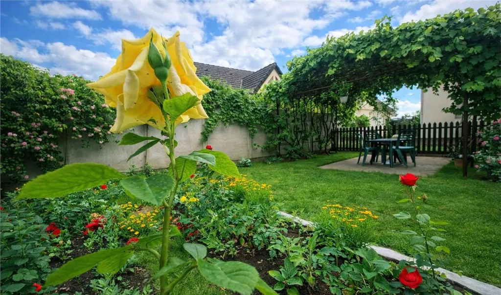 Este o casa cu traditie si amprenta istorica, cu o zona de relaxare personalizata prin dispunerea unei zone de dinning, inconjurata de trandafiri, lavanda, zmeura, agrise etc, curtea fiind atat pavata cat si cu zona verde.