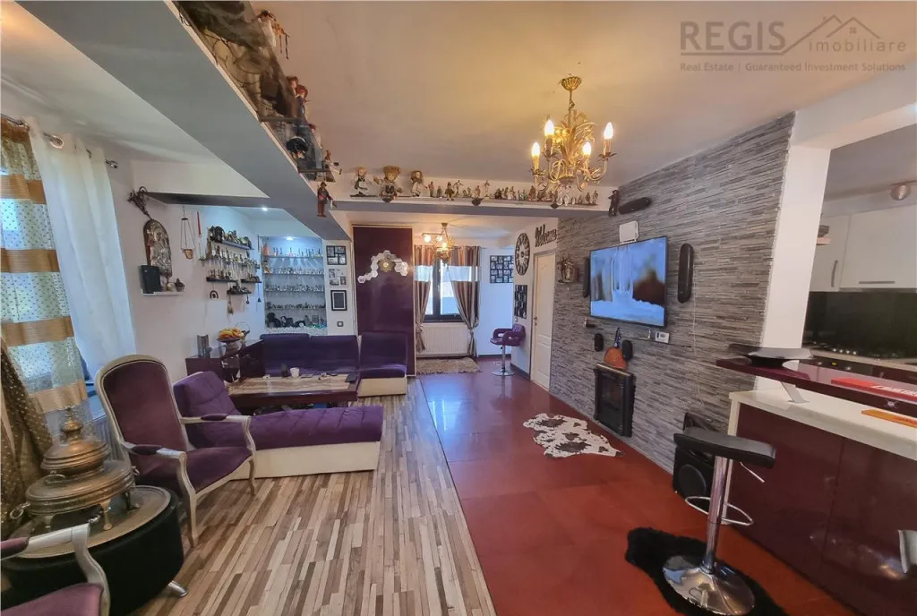 Imobilul este impartit in : - parter unde avem bucataria , baia de servici , camara si un living room generos