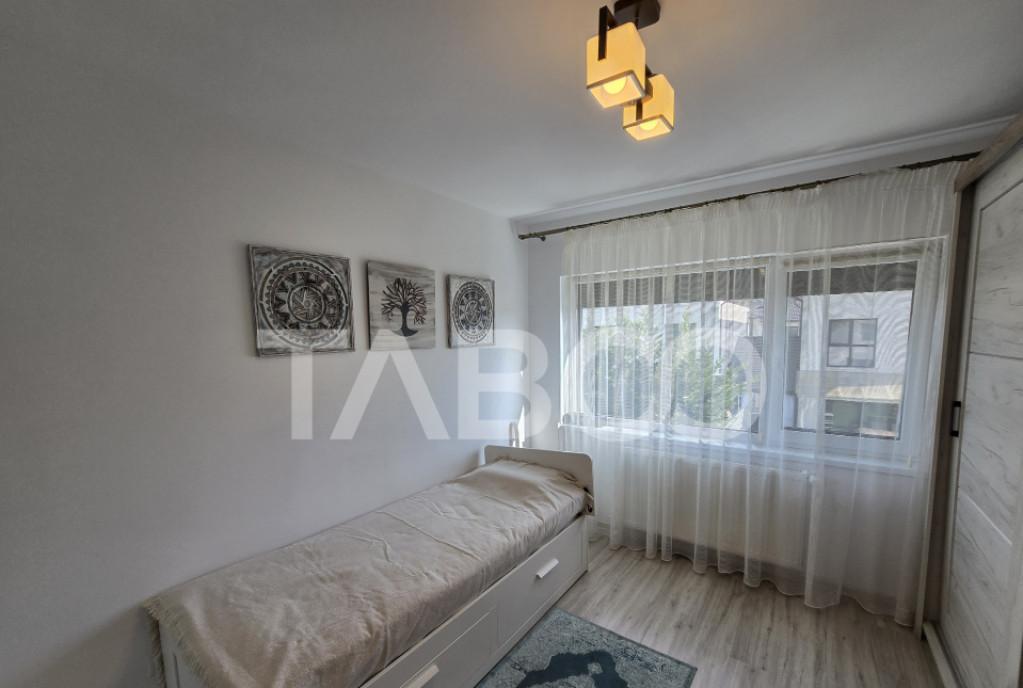 Apartament 4 camere de inchiriat decomandat 72 mp zona Doamna Stanca Sibiu TABOO Imobiliare propune un apartament de inchiriat cu 4 camere decomandat situat in localitatea Sibiu zona Doamna Stanca aflat la etajul 6 intr -un imobil tip bloc cu regim de inaltime pe Parter 6 Etaje anul constructiei 2019 structura caramida Suprafata utila de 72 mp balcon de 5 mp Apartamentul este structurat astfel bull Hol bull Bucatarie bull 2 Bai bull Living cu balcon bull 3 Dormitore bull Hol intermediar Finisajele interioare sunt moderne bull Usa intrare metal bull Usi interioare lemn bull Tamplarie ferestre pvc termopan bull Pereti vopsea lavabila faianta bull Podele parchet gresie Utilitati si dotari bull Bucatarie mobilata utilata bull Mobilat complet bull Utilitati curent electric apa canalizare gaz catv telefon acces internet fibra optica bull Izolatii exterior bloc izo...