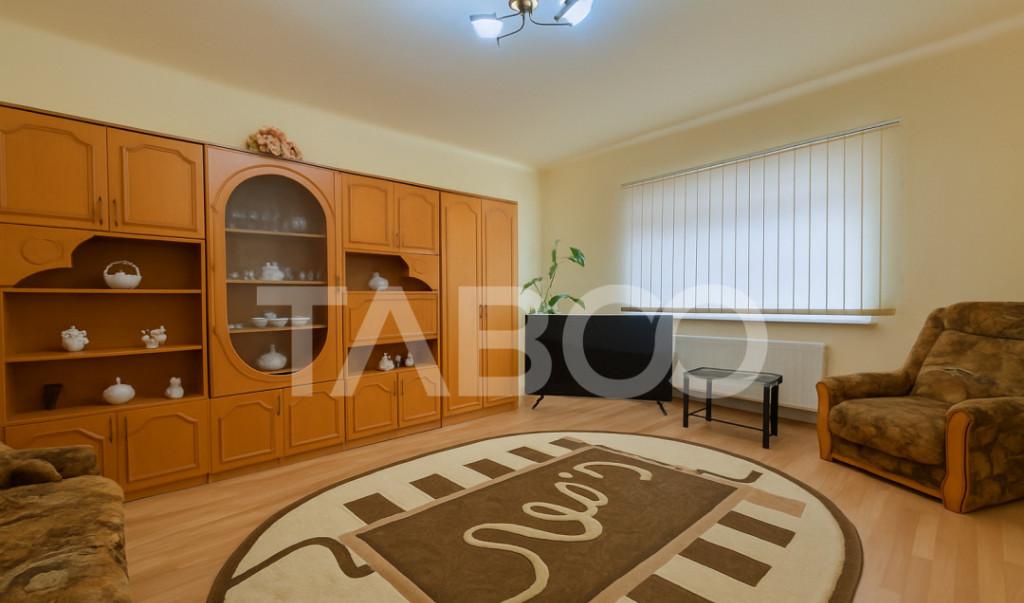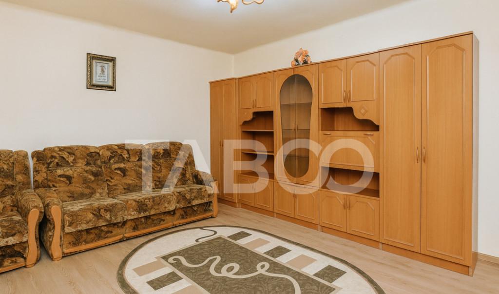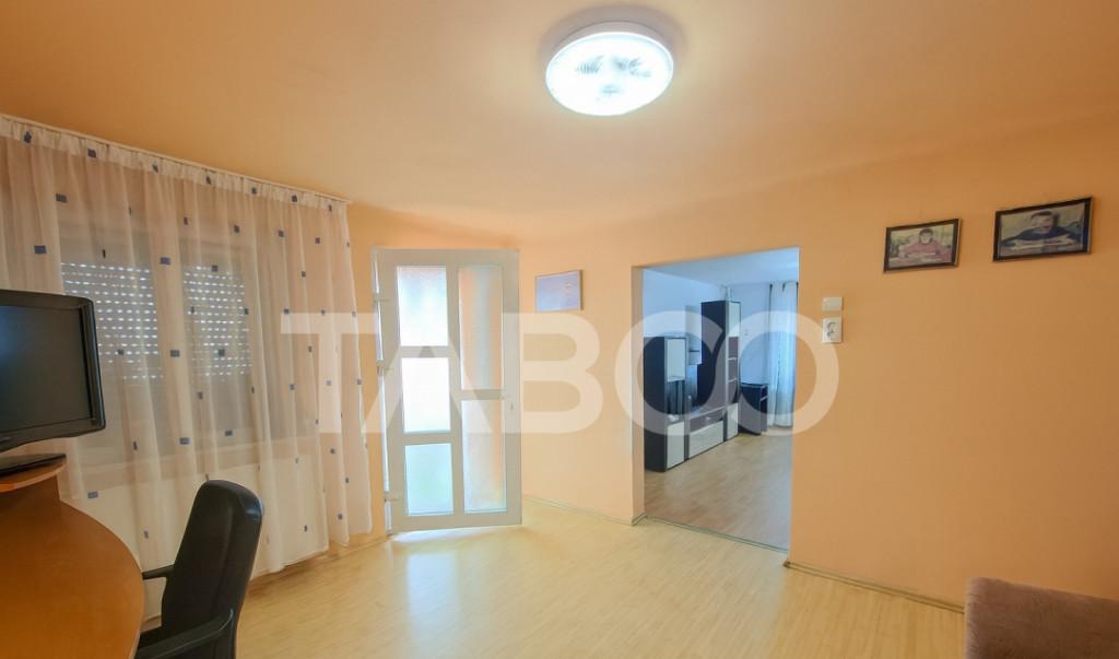 Apartament 3 camere de vanzare decomandat 67 mp zona Vasile Aaron Sibiu Avantaje majore ale acestui apartament bull Compartimentare eficienta bull nbsp Pivnita bull Pretabil investitie sigura bull Parcare extra pentru vizitatori bull Locatie ferita de aglomeratie TABOO Imobiliare propune un apartament de vanzare cu 3 camere decomandat situat in localitatea Sibiu zona Vasile Aaron aflat la etajul 9 intr-un imobil tip bloc cu regimul de inaltime parter 10 Etaje anul constructiei 1980 pe structura din beton bloc prevazut cu lift nou Suprafata utila de 67 mp balcon de 3 mp si pivnita de 6 mp Apartamentul este structurat astfel bull Hol mare la intrare bull Living cu iesire in balcon bull Bucatarie cu iesire in balcon bull Hol intermediar bull Debara bull Dormitor bull Dormitor bull Baie cu geam de aerisire Finisajele interioare sunt clasice bull Usa intrare metal bull Usi interioare celula...