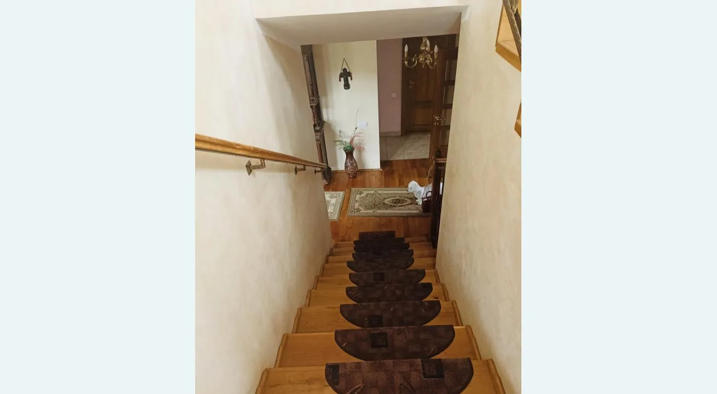 Imobilul are o suprafață construită de 256 mp, iar terenul aferent este de 510m. Iprejmuirea frontală este realizată printr-un gard din beton și fier forjat, poarta auto și accesul în garaj fiind automatizate. Intrând în curte suntem întâmpinați de o splendidă pergolă cu trandafiri, foarte multă verdeață, pomi fructiferi și un brad argintiu maestuos. La intrarea în imobil este situat in hol generos , un office și o baie, concepute în scopul facilitării unei activități lucrative ( notar, avocat, medic etc.) . În continuarea holului, printr-o ușă ornamentală din lemn masiv de intră în spațiul privat format din living open space, bucătărie , loc de luat masa și cămară. Din această zonă se asigură acces spre garajul auto și camera tehnica. Livingul, zugrăvit vintage venețian, are pardoseala realizată din parchet natural, mobilier clasic din lemn masiv, dispune de un spatiu generos și luminos, un șemineu și o sobă din teracotă maiestoasă realizate cu stil și funcționale, toate acestea asigurând o ambianță deosebită. Bucătăria și locul de luat masa sunt mobilate la comandă din lemn masiv, cu un design deosebit, sunt complet utilate cu aparatură de înaltă calitate ( cuptor electric, plită electrică, hotă, mașină de spălat vase etc.). Accesul la etaj se realizează pe o scară placată cu lemn și balustrada din fier forjat. Suntem întâmpinați de un spatiu de socializare din care se asigură și intrarea în dormitoare, pod și terasa descoperită. Dormitoarele au băi proprii , sunt dotate cu mobilier stil clasic, din lemn masiv realizat la comandă. Băile sunt complet utilate, cu mobilier de cea mai bună calitate. Din dormitorul matrimonial se intră într-un dressing generos, care asigură și accesul separat spre terasă. Ușile imobilului sunt realizate din lemn masiv. Imobilul dispune de un complex de anexe format din terasă, cameră de depozitare și pivniță. Terasa este construita din lemn, are un design rustic deosebit și oferă un spatiu generos și o ambianță specială. Dispune și de o zona de barbeque, formată din sobă de gătit cu plită și cuptor, cuptor pentru copt/prăjit, grătar și chiuveta. Încălzirea locuinței este asigurată la alegere de o centrala pe gaz sau o centrală pe peleți/lemne. Camera tehnica dispune de curent trifazic, putând asigură și obtiunea de încălzirea prin centrală electrică. Apa curentă este asigurată de la rețeaua municipală sau din puțul forat propriu, la alegere. Securitatea imobilului se realizează prin intermediul unui sistem wireless cu șapte senzori, cu alarmă și mesagerie telefonică.