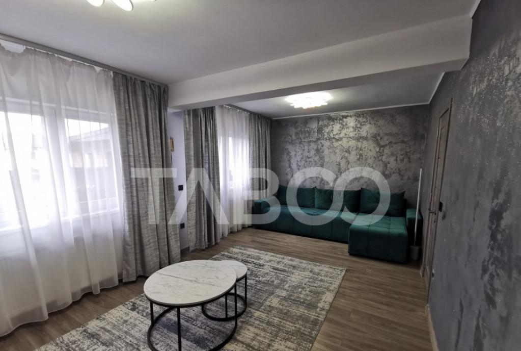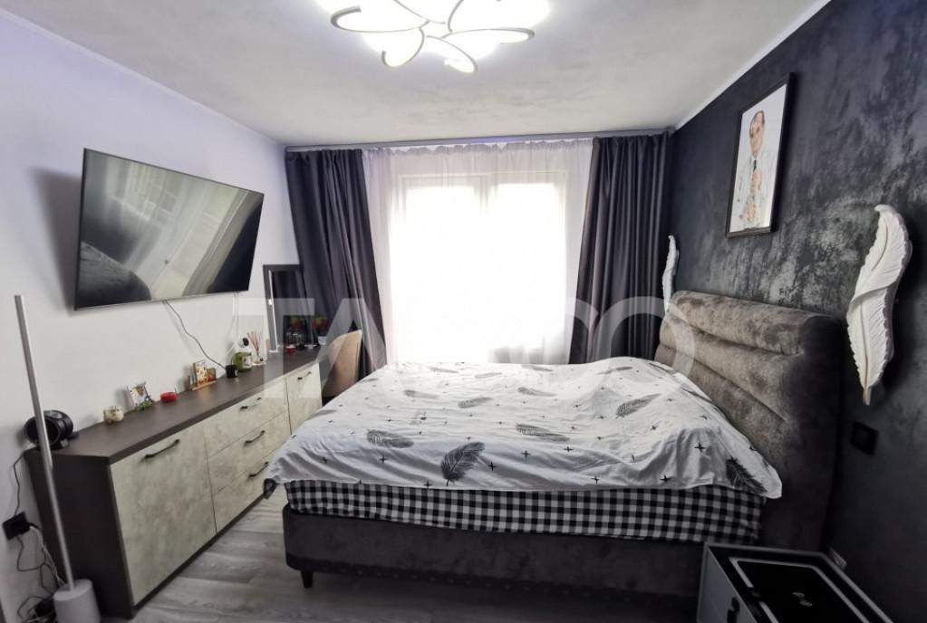 Apartament 3 camere de vanzare decomandat 67 mp zona Vasile Aaron Sibiu Avantaje majore ale acestui apartament bull Compartimentare eficienta bull nbsp Pivnita bull Pretabil investitie sigura bull Parcare extra pentru vizitatori bull Locatie ferita de aglomeratie TABOO Imobiliare propune un apartament de vanzare cu 3 camere decomandat situat in localitatea Sibiu zona Vasile Aaron aflat la etajul 9 intr-un imobil tip bloc cu regimul de inaltime parter 10 Etaje anul constructiei 1980 pe structura din beton bloc prevazut cu lift nou Suprafata utila de 67 mp balcon de 3 mp si pivnita de 6 mp Apartamentul este structurat astfel bull Hol mare la intrare bull Living cu iesire in balcon bull Bucatarie cu iesire in balcon bull Hol intermediar bull Debara bull Dormitor bull Dormitor bull Baie cu geam de aerisire Finisajele interioare sunt clasice bull Usa intrare metal bull Usi interioare celula...
