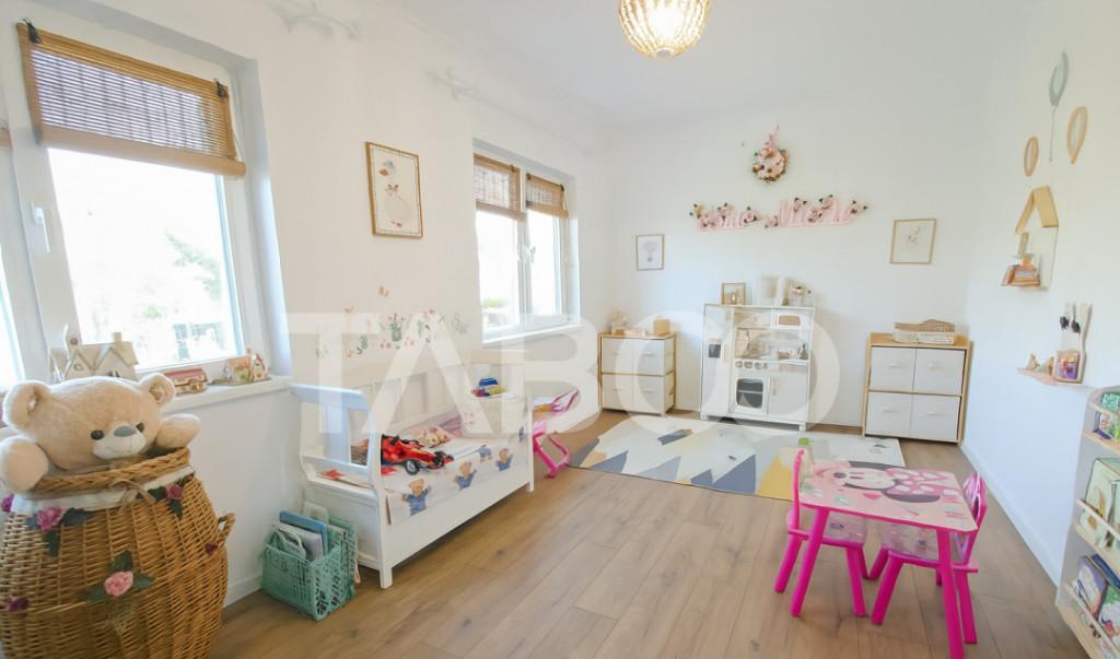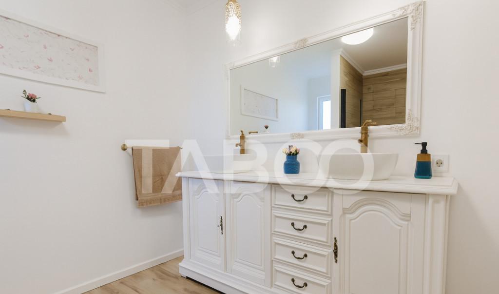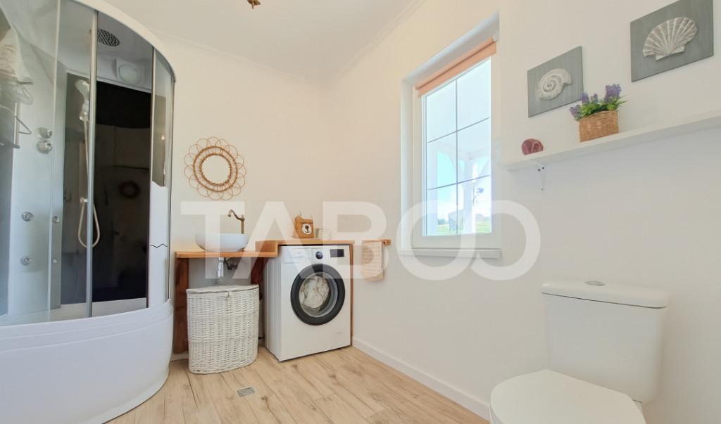 TABOO Imobiliare propune o nbsp casa tip duplex de vanzare in nbsp zona Selimbar din Sibiu aflata pe un teren in suprafata de 234 mp avand un front stradal de 8 mp cu acces la 2 strazi curte libera de 117 mp cu acces auto si 2 locuri de parcare Casa este construita in anul 2022 pe structura din caramida avand regimul de inaltime P E Pod cu o suprafata utila de 147 mp fiind compusa la parter din hol baie cu geam de aerisire debara bucatarie inchisa mobilata si utilata cu electrocasnice de cea mai buna calitate un living luminos de 32 mp cu iesire in curtea din spate si scarile care fac accesul spre etaj Etajul este compus din hol din care se face accesul si in pod care poate fi folosit ca spatiu pentru depozitare dormitor matrimonial cu baie proprie si acces pe balcon doua dormitoare si inca o baie Incalzirea se realizeaza prin centrala proprie si incalzire in pardoseala atat la parter cat si la etaj cu termostat pe fiecare camera Casa este izolata termic cu pol...