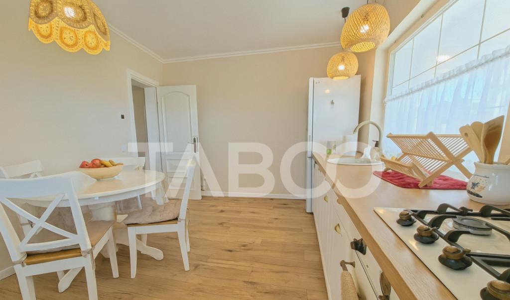 Apartament 3 camere de vanzare decomandat 62 mp zona Doamna Stanca Sibiu nbsp Avantaje majore ale acestui apartament bull Etaj intermediar bull Doua bai bull Orientare SE bull Complet mobilat si utilat pregatit sa va mutati TABOO Imobiliare propune un apartament de vanzare cu 3 camere decomandat situat in localitatea Sibiu zona Doamna Stanca aflat la etajul 2 intr -un imobil tip bloc cu regim de inaltime pe Parter 3 Etaje anul constructiei 2021 structura beton Suprafata utila de 62 mp Apartamentul este structurat astfel bull Hol bull Bucatarie bull Baie bull WC serviciu bull Living bull Dormitor bull Dormitor Finisajele interioare sunt nbsp moderne bull Usa intrare metal bull Usi interioare lemn bull Tamplarie ferestre pvc termopan bull Pereti vopsea lavabila faianta bull Podele parchet gresie Utilitati si dotari bull Bucatarie mobilata utilata bull Mobi...