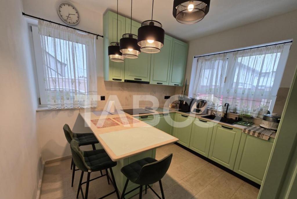 Apartament 3 camere de vanzare decomandat 62 mp zona Doamna Stanca Sibiu nbsp Avantaje majore ale acestui apartament bull Etaj intermediar 2 bull Doua bai bull Orientare SE bull Complet mobilat si utilat pregatit sa va mutati TABOO Imobiliare propune un apartament de vanzare cu 3 camere decomandat situat in localitatea Sibiu zona Doamna Stanca aflat la etajul 2 intr -un imobil tip bloc cu regim de inaltime pe Parter 3 Etaje anul constructiei 2021 structura beton Suprafata utila de 62 mp Apartamentul este structurat astfel bull Hol bull Bucatarie bull Baie bull WC serviciu bull Living bull Dormitor bull Dormitor Finisajele interioare sunt nbsp moderne bull Usa intrare metal bull Usi interioare lemn bull Tamplarie ferestre pvc termopan bull Pereti vopsea lavabila faianta bull Podele parchet gresie Utilitati si dotari bull Bucatarie mobilata utilata bull Mo...