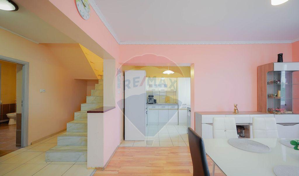 Propunem la vanzare o casa P 1 gandita pentru confortul unei familii dar potrivita si pentru cupluri sau persoane care cauta spatiu suplimentar pentru lucru de acasa Suprafata utila de 165 mp este impartita eficient pe doua niveluri pe un teren de 500 mp Parterul este dedicat zonei de zi living cu lumina naturala si iesire catre terasa de la parter loc optim pentru masa in aer liber Bucataria este separata cu spatiu functional iar baia de serviciu deserveste zona de zi Etajul reuneste 4 dormitoare configurate pentru odihna si intimitate o baie si un balcon ce completeaza confortul nivelului superior Exteriorul ofera o curte utilizabila si doua garaje care asigura parcare acoperita si spatiu de depozitare Configuratia cu 6 camere permite scenarii flexibile birou hobby sau camera pentru oaspeti Cod oferta 2773259
