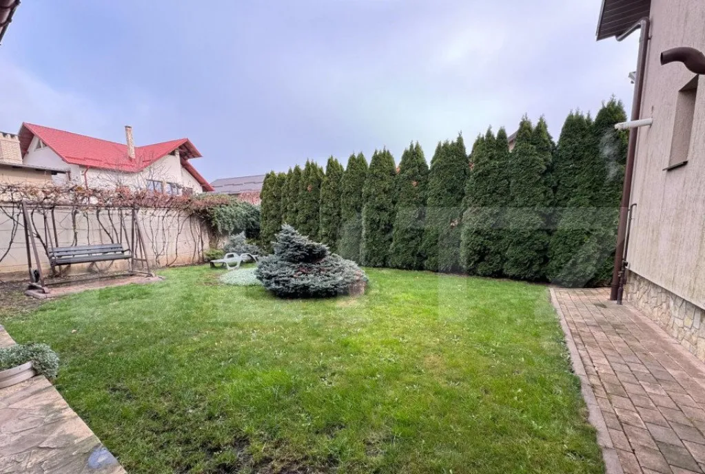 Grădina este amenajată cu grijă, având pomi fructiferi, brazi argintii și un solar, oferind un spațiu perfect pentru relaxare și grădinărit. Această proprietate unică îmbină confortul modern cu natura, fiind ideală pentru o familie care își dorește un loc primitor și elegant.