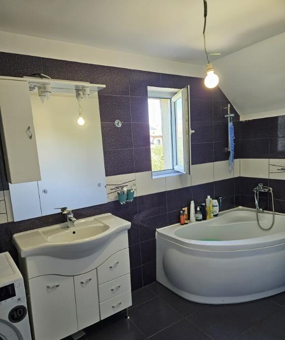 Avem placerea sa va prezentam o vila extraordinara care impresioneaza atat prin calitatea constructiei cat si prin finisajele premium oferind un stil de viata modern si confortabil Distributia spatiului Subsol - cca 48 mp - Ideal pentru depozitare sau pentru pasionatii de vinuri acest subsol partial gazduieste centrala tip Vaillant si boilerulul de 200 de litri pastrand loc si pentru a crea un colt special pentru colectia dumneavoastra de vinuri Parter - Zona de dining si living - Spatiu generos si luminos perfect pentru petrecerea timpului in familie sau pentru serile de socializare cu prietenii - Hol spatios - Creaza o prima impresie placuta si eleganta conducand catre restul casei - Bucatarie moderna cu loc de luat masa - Dotata cu toate facilitatile avand acces direct la terasa exterioara ideala pentru cinele de vara in aer liber - Baie- Finisaje moderne si functionalitate - Dormitor primitor - Ideal pentru oaspeti sau pentru un birou de acasa Et...