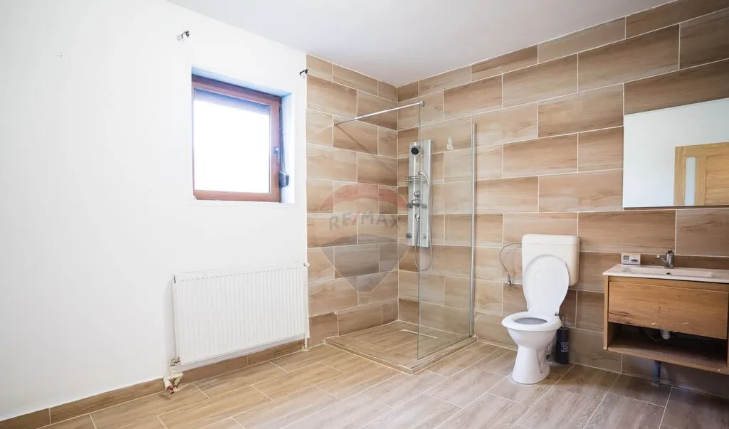Construită în 2005, cu structură solidă și termoizolație, casa are 242 mp utili pe două niveluri, nemobilată — ceea ce înseamnă că nu plătești gusturile altcuiva, o amenajezi exact cum vrei.