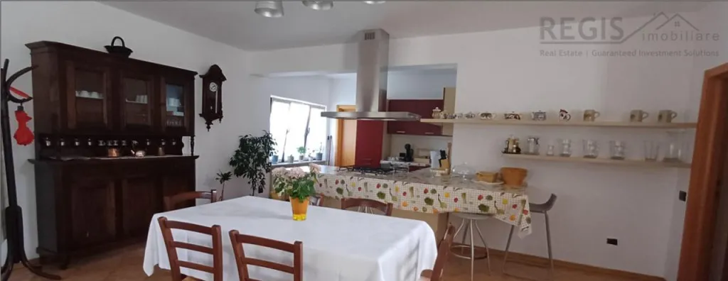 Bucataria este dotata cu tot ce aveti nevoie iar pe scara interioara de lemn se ajunge la etaj unde va asteapta 4 dormitoare mobilate si cu bai proprii.