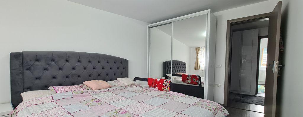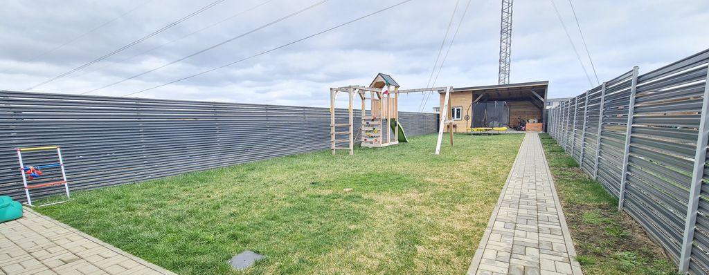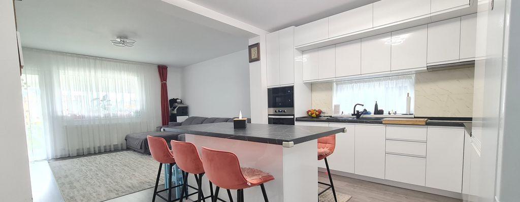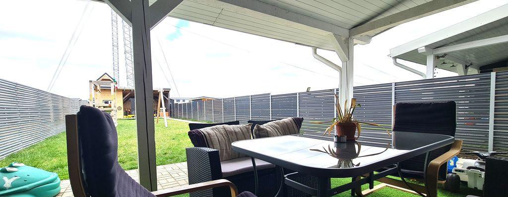Agentia imobiliara VIP Imob propune spre cumparare o casa moderna si cocheta cu 4 camere 3 dormitoare de tip duplex situata in complexul rezidential Valea cu Flori Residence 8 din cartierul Izvor Casa se vinde mobilata si utilata complet Este mobilata cu mobilier Mobexpert si mobila la comanda realizata de Noah Decor fiind utilata cu electrocasnice Beko si Bosh frigider incorporat cuptor plita hota masina de spalat vase masina de spalat si uscator rufe Compozitie parter camera de zi bucatarie hol baie cu dus camera tehnica terasa acoperita mansarda 3 dormitoare dintre care 1 cu dressing baie cu cada hol cu o suprafata utila de 90 00 mp terasa de 16 00 mp acoperita si dispune de un teren de 225 00 mp Gradina este amenajata cu tuia gazon alee pavata iluminat exterior zona de relaxare si spatiu de depozitare Detalii tehnice - constructie din lemn cu acoperis din tabla marca Bilka - termoizolatie cu polistiren expandat de 10...