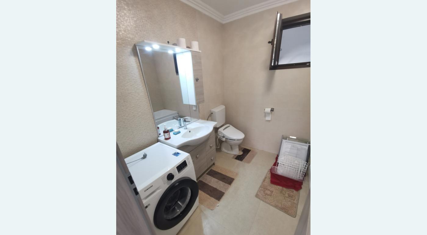 1 baie moderna cu vas de WC cu functie de spalare tip bideu integrat