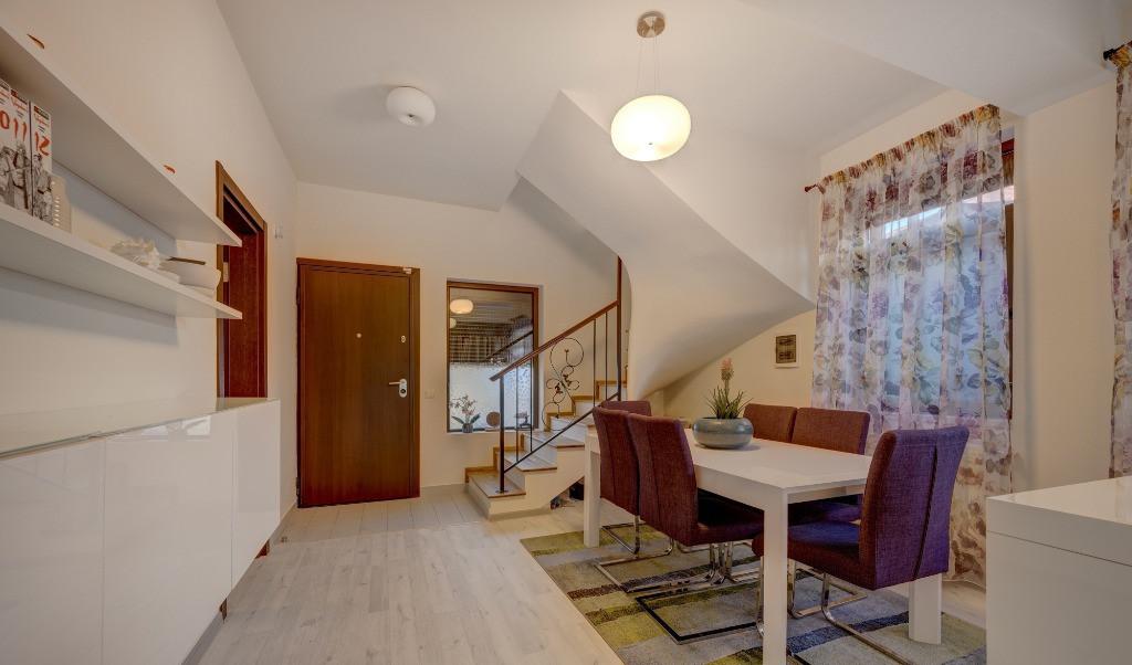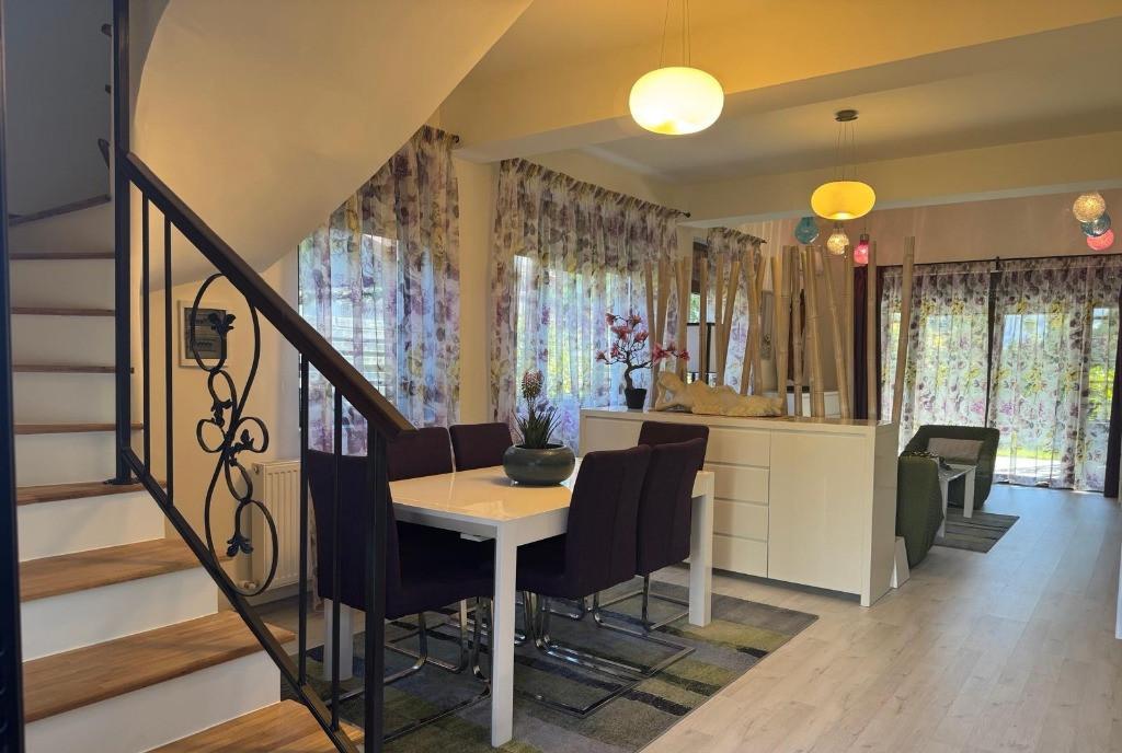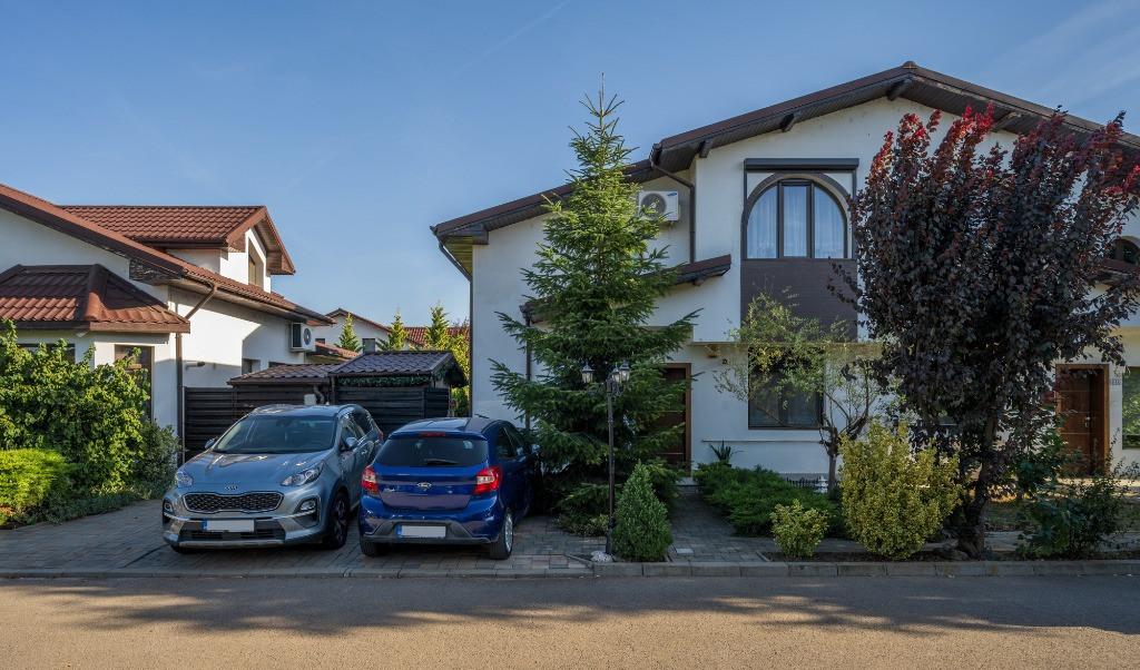 Locuinta contemporana intr-un complex rezidential privat cu acces securizat spatii verzi si locuri de joaca pentru copii Aceasta casa este alegerea ideala pentru cei care cauta confort siguranta si un stil de viata modern la doar cateva minute de Paradisul Verde si de zona comerciala Corbeanca Proprietatea este complet renovata si pregatita pentru mutare imediata Detalii generale Suprafata utila 102 mp utili fara terase si scari Teren 250 mp Locuri de parcare 2 Compartimentarea practica si fluida cuprinde 4 camere living 35 mp si 3 dormitoare de 15 mp 14 mp 11 mp Bucatarie separata si inchisa 10 2 mp 2 bai 5 3 mp si 5 mp Terasa termoizolata si finisata cu lambriuri de lemn 24 mp Locuri de joaca si parcuri pentru copii private Dotari Beneficii Panouri fotovoltaice 4 kW contract prosumator Obloane metalice exterioare la toate suprafetele vitrate inclusiv plase insecte actionate manual sau electric Aparate de aer conditionat pe fiecare nivel Gradina amenajata cu rulouri gazon vegetatie adulta si sistem de irigatie Casa de gradina dublu izolata 6 mp Granit pe terasa si trotuare Constructie solida de calitate caramida Porotherm stalpii grinzile centurile si placile din beton armat compartimentare caramida usi interioare si exterioare Door System centrala termica Saunier Duval Peretele comun intre duplexuri este dublu cu izolatie fonica excelenta Terasa termoizolata cu fundatie solida Avantaje suplimentare Casa renovata complet inclusiv parchet nou Se vinde partial mobilata si utilata totul este pregatit pentru mutare rapida Toate utilitatile disponibile gaz apa canalizare electricitate internet de mare viteza Comunitate linistita acces securizat strazi asfaltate cu retea de apa si canalizare spatii verzi si locuri de joaca special amenajate pentru copii in interiorul complexului cu acces exclusiv Vino sa o descoperi Este locuinta ideala pentru cei care cauta confort siguranta si un stil de viata modern