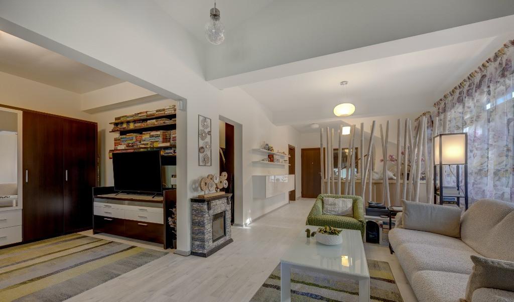 Proprietar vand casa moderna in Aria Residence o locuinta contemporana intr-o comunitate de tip gated ce ofera liniste si siguranta Proprietatea are 101 3 mp utili fara terase si scari si un teren de 250 mp 2 locuri de parcare si a fost proaspat renovata Compartimentarea este extrem de practica si fluida dispune de 4 camere 3 dormitoare un dinning si un living si 2 bai bucatarie inchisa o terasa termoizolata de 24 mp perfecta pentru relaxare si cuprinde Parter o Bucatarie inchisa 10 21 mp o Dinning 13 32 mp o Living 21 35 mp o Dressing 2 15 mp o Dormitor/birou 11 04 mp o Baie 5 23 mp o Terasa acoperita 24 mp Etaj o Dormitor 14 76 mp o Dormitor 13 62 mp o Baie 4 85 mp o Dressing 2 88 mp o Hol 1 86 mp Terasa access 2 63 mp Scari 5 92 mp Casa se vinde partial mobilata si utilata avand urmatoarele dotari suplimentare panouri fotovoltaice de 4 kW contract prosumator obloane metalice exterioare la toate suprafetele vitrate terasa acoperita...