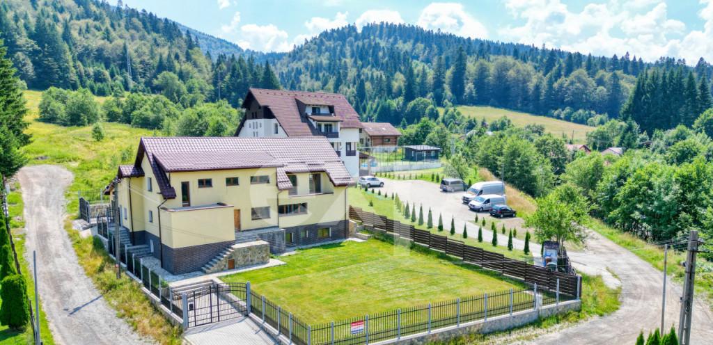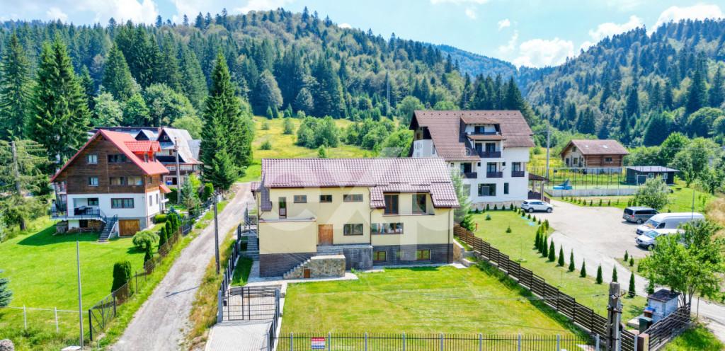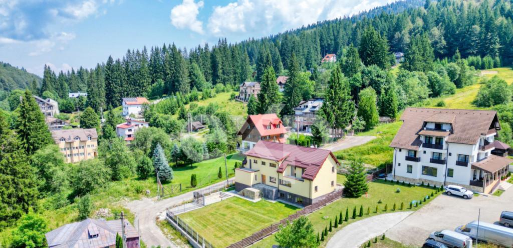 Casa noua icirc n Predeal ndash Strada Manastirii Proprietate D P M teren 1 000 mp proiect cu potential turistic si rezidential Pe strada Manastirii din Predeal icirc ntr-o zona linistita cu deschidere catre natura si privelisti montane se afla o proprietate care icirc mbina spatiul soliditatea constructiei si libertatea de personalizare Este genul de loc unde linistea muntelui se simte imediat iar curtea generoasa icirc ti ofera acel sentiment de aer intimitate si echilibru pe care tot mai putine proprietati icirc l mai pot oferi Casa este amplasata pe un teren de 1 000 mp complet icirc mprejmuit cu gard din beton si fier forjat iar curtea beneficiaza de sistem de irigare automatizat g acirc ndit pentru icirc ntretinere usoara si eficienta a spatiului verde Constructia este dispusa pe Demisol Parter Mansarda D P M si are o suprafata construita de 505 mp respectiv o suprafata utila de aproximativ 400 mp oferind volume generoase ideale at acirc t pentru locuire c acirc t si pentru utilizare turistica sau mixta nbsp Casa este finalizata la exterior la stadiul de rosu icirc n interior cu proiect de instalatie electrica deja realizat Acest stadiu reprezinta un avantaj real pentru cumparatorii care icirc si doresc sa icirc si personalizeze casa de la zero fara compromisuri legate de finisaje sau compartimentari impuse Detalii tehnice si utilitati racordata la curent electric apa si canalizare racordate instalatia de gaz este la coltul proprietatii pregatita pentru racordare casa izolata cu vata bazaltica ferestre cu t acirc mplarie termopan si 3 foi de sticla pentru eficienta energetica si confort icirc nscrisa icirc n Cartea Funciara ceea ce permite achizitia inclusiv prin credit ipotecar Din punct de vedere al utilizarii proprietatea se preteaza excelent pentru casa de vacanta premium la munte investitie turistica pensiune icirc nchiriere pe termen scurt locuinta rezidentiala pentru cei care icirc si doresc spatiu liniste si intimitate Predealul ram acirc ne una dintre cele mai cautate statiuni montane din Rom acirc nia cu cerere constanta at acirc t din partea turistilor c acirc t si a cumparatorilor care cauta un stil de viata diferit mai aproape de natura nbsp Proprietatea este prezentata prin materiale video tur virtual imagini aeriene si planuri astfel icirc nc acirc t sa poata fi analizata icirc n detaliu icirc nca dinaintea unei vizionari fizice Id intern EXP545