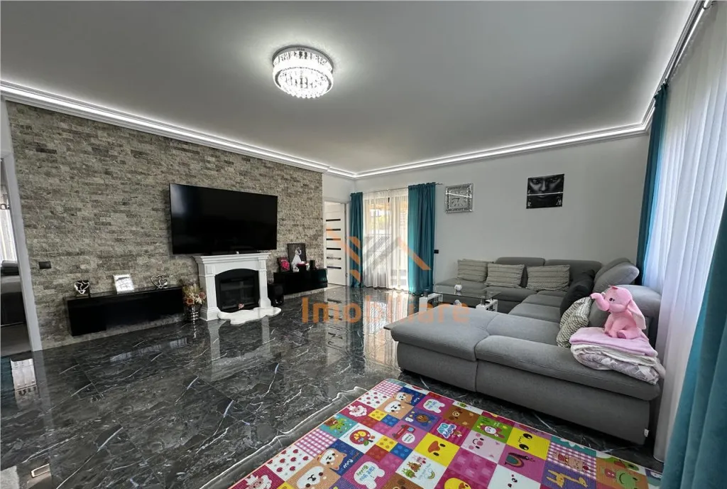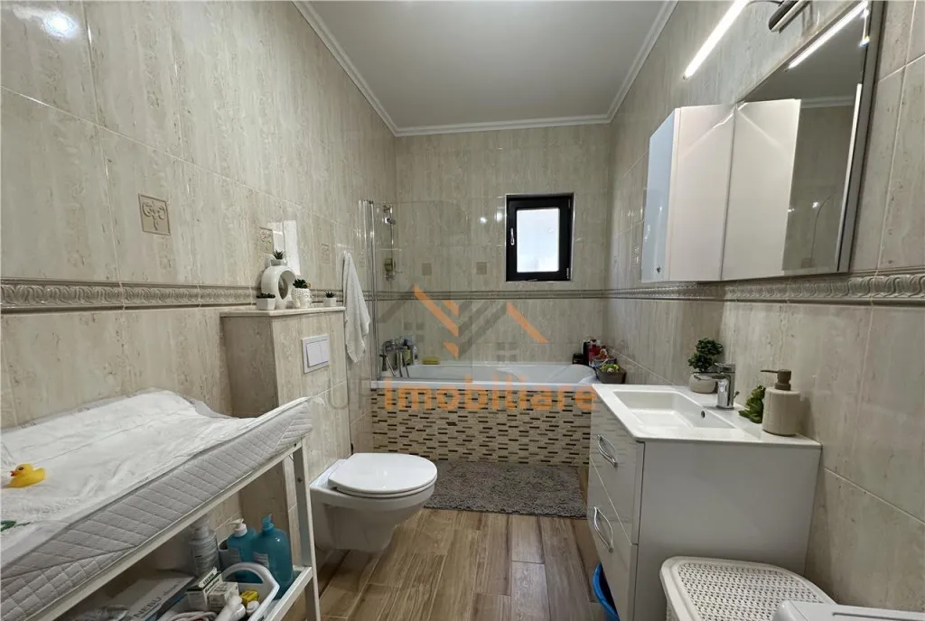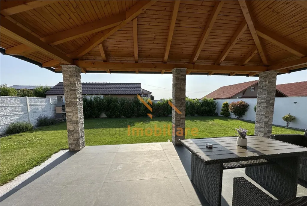 Casa dispune si de poarta centralizata din aluminiu prin telecomanda, curte pavata, betonata, gard de beton/gard viu, sistem de irigare, aer conditionat.