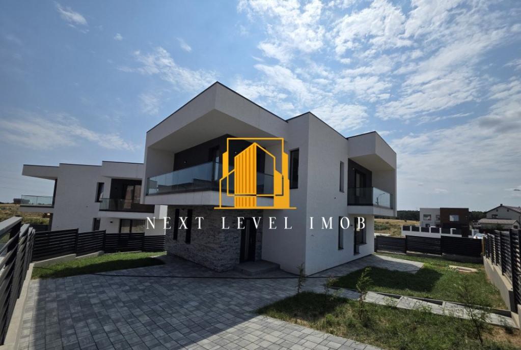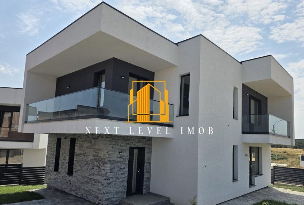 Buna ziua sunt Florina Mantescu si va recomand pentru resedinta familiei dumneavoastra aceasta vila noua foarte modern finisata situata in apropiere de Jolie Ville Mall Vila este finisata cu materiale de calitate premium respectiv piatra naturala parchet din stejar masiv ceramica Marazzi centrala BUDERUS GERMANIA bucatarie GERMANIA echipata cu aparatura MIELE SI BOSCH Se vinde complet mobilata Dispune de 1 garaj si inca 3 locuri de parcare Impartirea pe fiecare etaj este urmatoarea Parter living spatios si luminos cu vedere la gradina zona de relaxare si dining bucatarie baie cu cabina de dus birou/dormitor camera tehnica si terasa acoperita cu acces din dining Etaj 1 2 dormitoare matrimoniale cu bai si dresinguri proprii plus terase Etaj 2 1 dormitor cu baie dresing propriu si terasa 1 dormitor pt bona 1 hobby room mare o baie mare si cu rol de spalatorie uscatorie si logie Strada este una linistita retrasa de la soseaua principala dar cu ac...