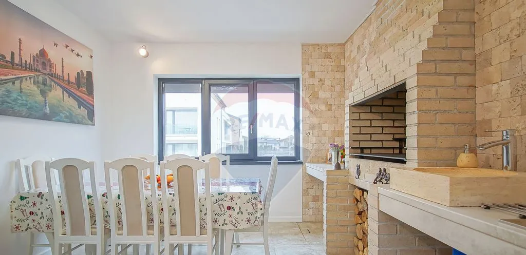 Încălzirea este realizată integral prin pardoseală, cu instalație profesională și control eficient al temperaturii. Apa potabilă este tratată prin dedurizator și stație de filtrare, iar apele pluviale sunt drenate separat, subteran.