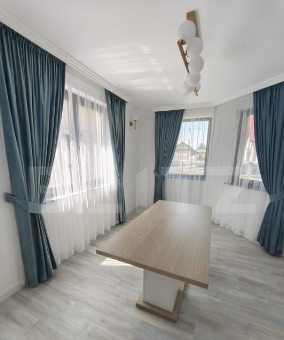Proprietar vand casa finalizata in urma cu 1 an complet mobilata si utilata cu finisaje si mobilier premium cu o suprafata utila de 100 mp si teren de 250 mp Este compusa din 3 dormitoare o baie balcon si pod amenajat la etaj si living cu zona de dining colt de citit bucatarie complet utilata debara baie si hol la parter cu acces spre curtea din spate cu terasa si gradina cu pergola retractabila si curtea din fata casei cu 2 locuri de parcare si poarta ce poate fi automatizata Imobilul are supraveghere video este foarte bine izolat termic are incalzire in pardoseala la parter si calorifere la etaj centrala termica proprie rulouri exterioare la dormitoare plase de tantari la toate geamurile inclusiv la usa de acces spre terasa electrocasnice clasa energetica A combina frigorifica cuptor aragaz cuptor cu microunde masina de spalat vase hota masina de spalat rufe cu uscator inclus si smart TV canapea extensibila de lux corpuri de iluminat smart si lumina...
