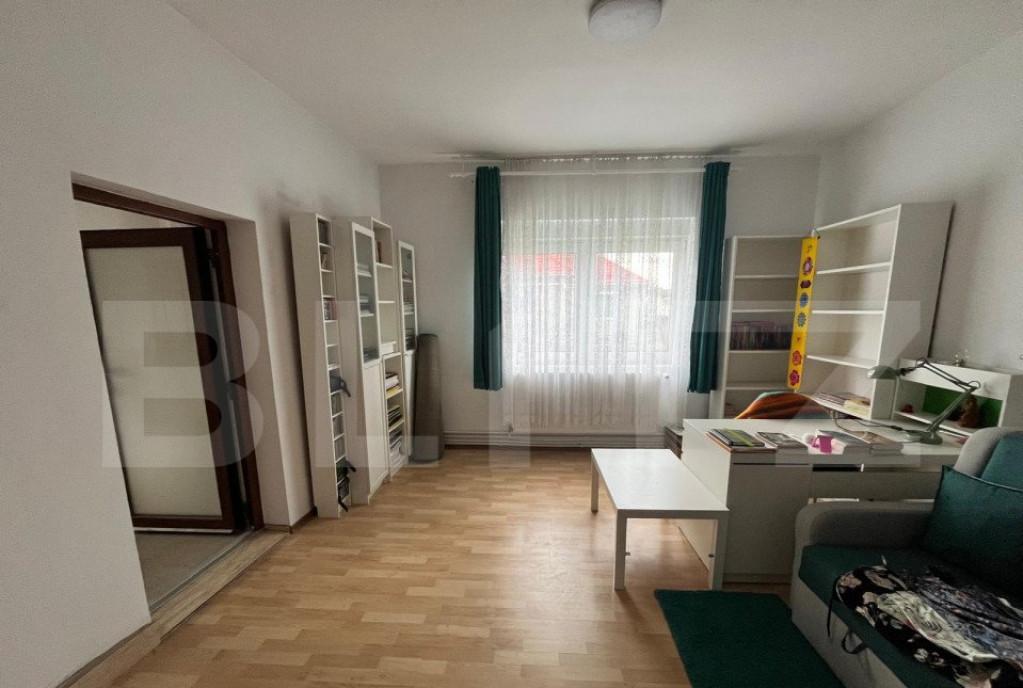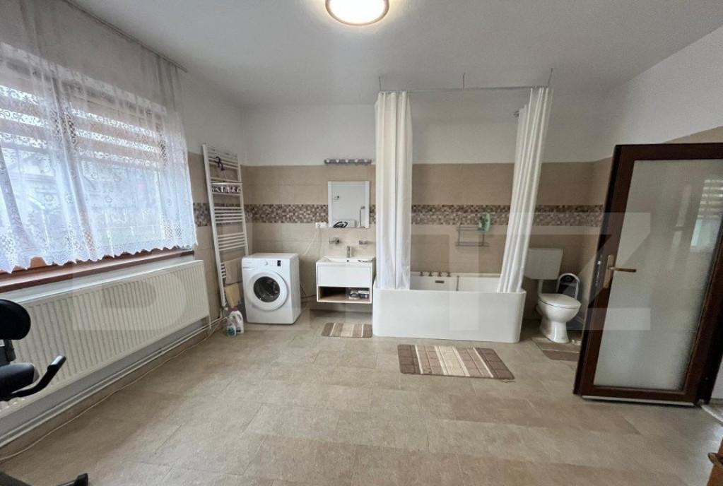 Casa individuala pretabila spatiu comercial de vanzare in zona Trei Stejari din Sibiu cu o suprafata utila de 440 mp si totala de 534 mp si o curte libera individuala pavata de 150 mp cu posibilitate de acces auto si parcare a nu mai putin de 6 autoturisme garaj incalzit de 22 mp Locuinta este foarte spatioasa si luminoasa bine compartimentata pe cele trei niveluri ale sale astfel demisolul are 3 pivnite parterul casei este compus dintr-un hol generos la intrare de unde se face accesul spre etajele casei un living foarte luminos de 68 mpu un birou de 18 mpu cu WC de servici debara si o camera de 35 mp Accesul la primul nivel se face pe scara interioara foarte solida placata cu gresie iar aici se afla un hol de acces in living de 43 mpu si de aici se face lagatura catre celelalte camere nbsp si 3 bai De asemenea pentru depozitarea lucrurilor aveti la dispozitie podul Curte interioara betonata Casa detine toate utilitatile si imbunatatirile moderne necesare unui tra...