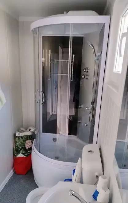 Baia este utilata complet cu cabina de dus chiuveta masca toaleta bazin cu toata instalatia pentru alimentare si evacuare Spatiul pentru bucatarie este prevazut cu sistem de prindere mobila suspendata si instalatie completa pentru alimentare si evacuare