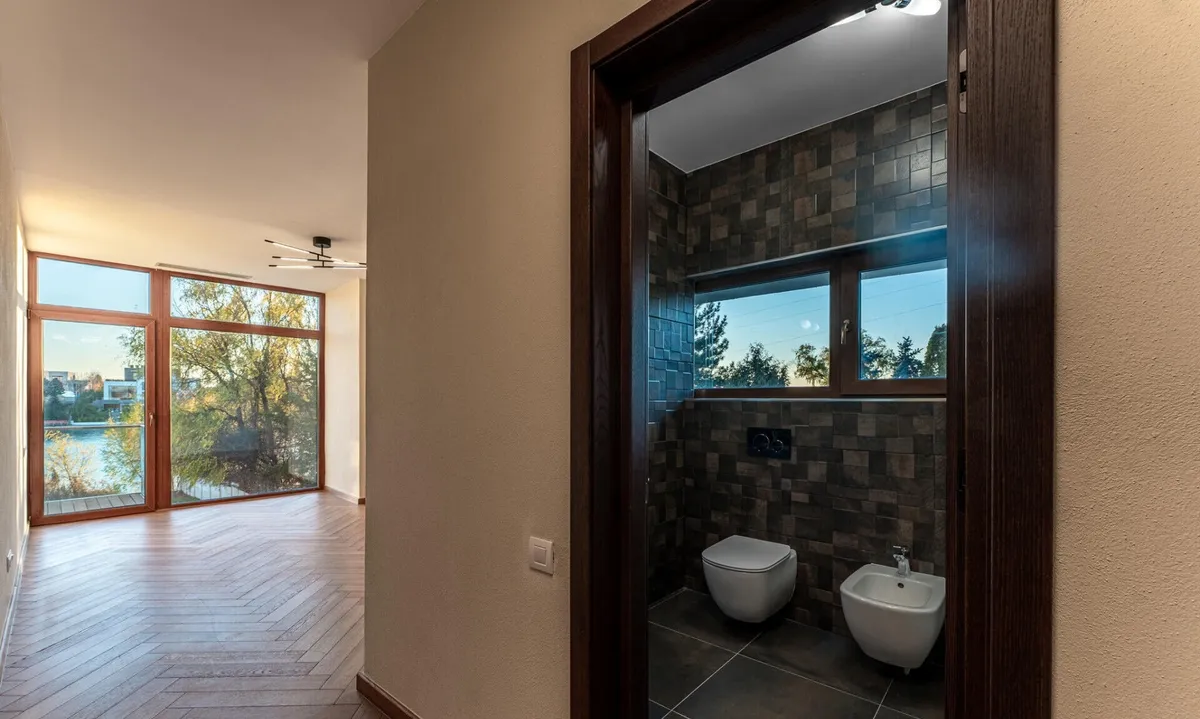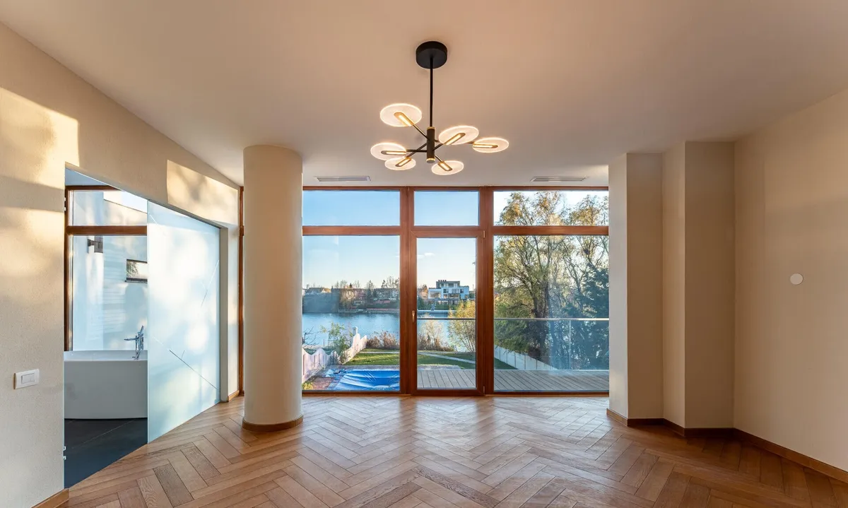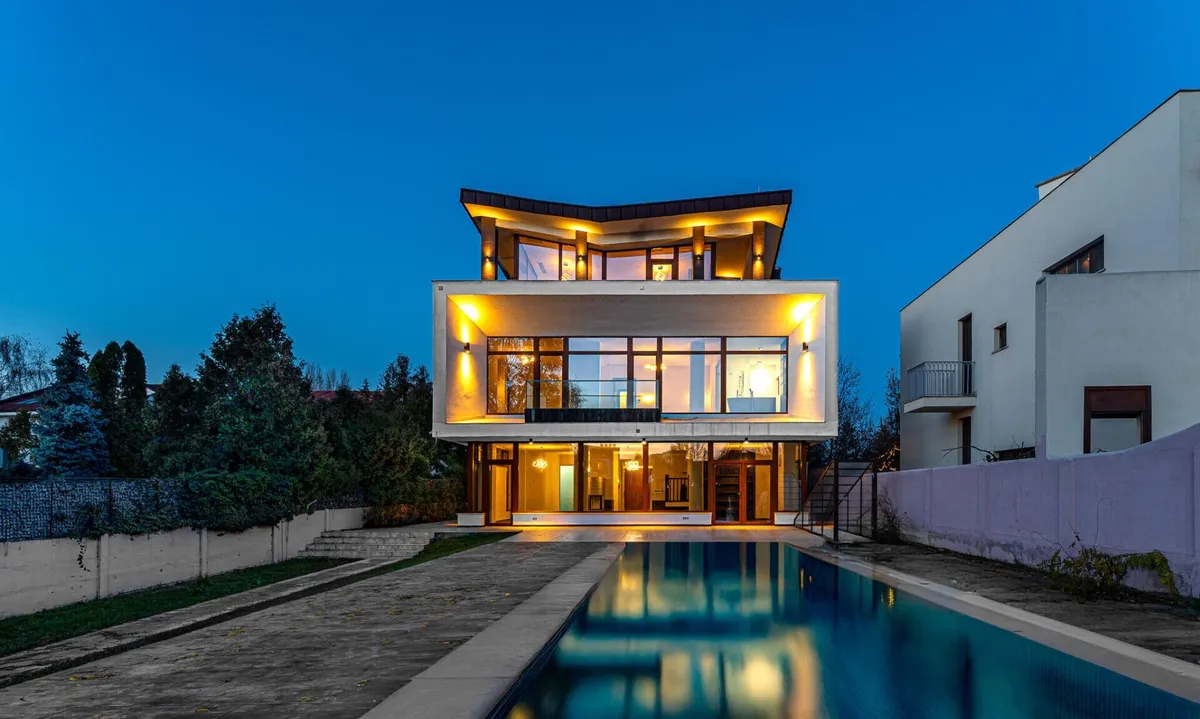 Aici, clasicul si modernul se impletesc in fiecare detaliu. Piscina priveste spre lac, iar apusul se revarsa peste living, gradina si pana in cada de la primul etaj. Spatiile amplu vitrate lasa lumina sa-ti cuprinda privirea peste tot. Semineul modern din sticla aprinde serile cu o caldura calma, iar suprafetele vaste se completeaza minunat cu sauna retrasa de la mansarda.Bucataria complet mobilata/utilata, garajul pentru doua masini si tehnologiile discrete - panouri fotovoltaice, centrala termica, pompa de caldura, aer conditionat - aduc confortul bine meritat.Iar gradina, coborand spre apa, pare o invitatie tacuta la contemplare. Aici, fiecare zi devine lumina si pace. Daca simti chiar si in parte ca ar puta fi ceea ce cauti, te invit la o vizionare sa o descoperi in ritmul tau.