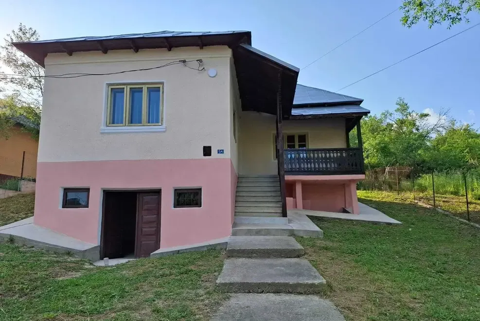 Vand casa 3000 mp teren compusa din doua camere bucatarie baie hol sala in fata terasa in spate beci garaj Situata pe DN 67 Stoenesti-Barlogu la 25km Rm Valcea 6km Baile Govora 14km Ocnele Mari si 21km Horezu Utilitati curent apa retea canalizare fantana