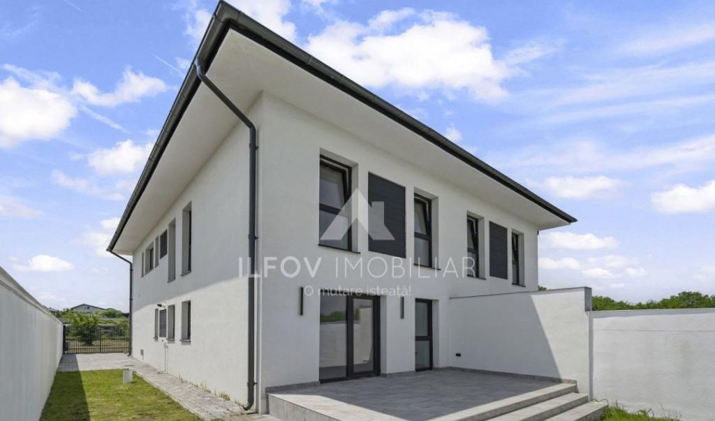 Vila moderna individuala 4 camere finalizata in 2025 - suprafata utila 131 mp si curte proprie 208 mp Va propun spre vanzare o casa individuala aflata intr-un ansamblu restrans de doar 4 case cu un design modern Proprietatea este situata intr-o zona linistita si sigura din Otopeni cu acces rapid la toate facilitatile necesare gradinite scoli centre comerciale restaurante si mijloace de transport in comun Imobilul situat in zona Otopeni-Ferme P 1 131mp utili are 4 camere 3 dormitoare 3 grupuri sanitare cu geam la baie 2 balcoane 1 terasa dormitor matrimonial cu baie proprie constructie din caramida si stalpi din beton casa se preda finisata la CHEIE Teren 350mp din care amprenta casei este de 67mp din care teren liber in suprafata de 208mp spatiu pentru parcare - 2 auto Finisaje -pereti din caramida tip Porotherm tamplarie PVC Rehau cu 7 camere geam tripan feronerie Rotto instalatie electrica din cupru retea TV internet alarma monitor...