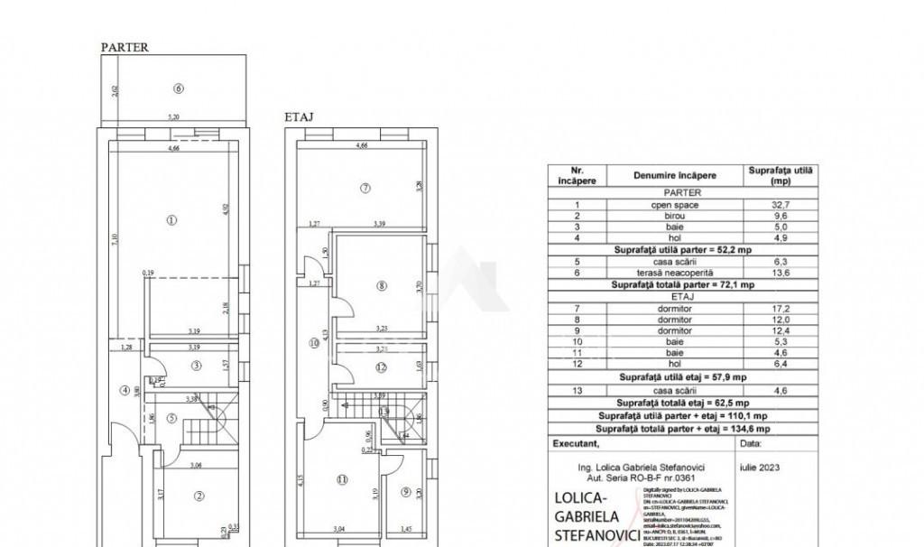 ILFOV IMOBILIAR - O mutare isteata OTOPENI - STR TRAIAN VUIA - CASA TIP DUPLEX 134 6MP LOT 225MP 5 CAMERE TOATE UTILITATILE PRET LA CHEIE 199 800 EURO TVA INCLUS Asa cum v-am obisnuit COMISION 0 Disponibila 1 din cele 2 Situata pe o strada linistita cu trafic redus aceasta casa tip duplex este alegerea ideala pentru o familie care isi doreste confort discretie si costuri reduse de mentenanta intr-o zona aerisita si bine conectata Accesul catre Bucuresti se poate face rapid prin Tunari DN1 sau Autostrada A0 ceea ce ofera o flexibilitate excelenta pentru naveta sau deplasari frecvente La doar 100 de metri de casa pe Strada 23 August se afla statia Liniei Albastre - transportul public local care strabate intreg Otopeniul si ajunge direct in DN1 un avantaj important pentru cei care prefera sa se deplaseze si fara masina In proximitate la doar 7-9 minute se afla multiple magazine de consum precum Lidl Mega Image Penny o macelarie locala o brutarie artizanala si alte puncte de interes utile pentru traiul zilnic Un alt beneficiu important este faptul ca Otopeniul va beneficia in viitorul apropiat de o statie de metrou parte din extinderea Magistralei 6 ceea ce va aduce un plus major de conectivitate si va contribui la cresterea valorii imobiliare in zona Investitiile in astfel de locatii devin tot mai atractive iar achizitia unei case acum poate reprezenta nu doar un pas spre un trai linistit ci si o decizie financiara inteligenta pe termen lung Locuinta are o suprafata construita de 134 6mp si utila de 110 1 mp este amplasata pe un teren de 225 mp Compartimentarea este perfect gandita pentru viata de zi cu zi trei dormitoare trei bai un birou la parter care poate fi utilizat si ca dormitor suplimentar un living generos cu bucatarie open-space si acces direct catre o terasa spatioasa de 13 6 mp scaldata in lumina naturala de dimineata pana la pranz Casa are o structura solida din caramida Porotherm este termoizolata cu polistiren de 10 cm beneficiaza de tamplarie tripan Salamander si este racordata la toate utilitatile Gardul este realizat din caramida si beton iar portile sunt metalice oferind un plus de siguranta si estetica Constructia este finalizata in 2023 si se preda complet finisata Pret finisata 199 800 EURO TVA INCLUS Oferim broker pentru obtinerea unui eventual credit imobiliar Daca doriti o colaborare cu agentia noastra ne puteti scrie pe adresa de e-mail sau va asteptam la sediul din Otopeni Str 23 August nr 152A Ilfov Contact email 160 protected 0733 041 859 Costin Stefan - Broker/Owner Id intern P275