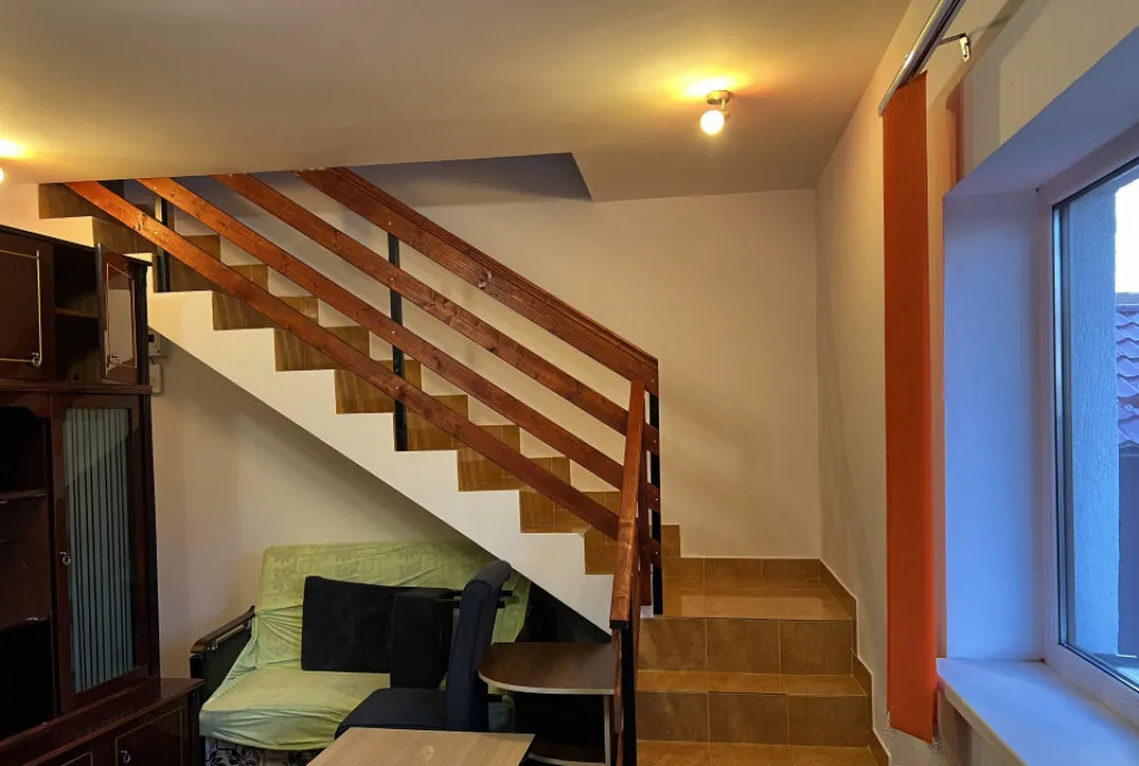 prounem spre inchiriere o casa de inchiriat tip duplex situata in selimbar zona motel dracula compusa din la parter o bucatarie cu camara ,separat living ,baie iar la etaj doua dormitoare spatioase o baie un dressig si doua balcoane, afara se gaseste o terasa acoperita si un grill + garaj . casa este mobilata si utilata ca in poze si se inchiriaza la pretul de 700 euro lunar(pret cu garaj 800 euro lunar) + 1 luna garantie. comision agentie 50 % din prima chirie . pentru detalii si vizionari agent imobiliar radu tel 0751081919