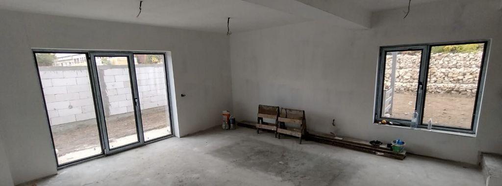 Blitz ofera spre vanzare o casa individuala pozitionata in Jucu de Mijloc ferita de zgomotul si poluarea orasului dotata cu facilitatile unei zone rezidentiale moderne Proprietatea este construita in 2022 are suprafata utila de 120mp peretii din caramida cu izolatie exterioara geamuri si usi la intrare din termopan Imobilul este dispus pe doua niveluri P E P avand urmatoarea compartimentare P hol bucatarie spatioasa living baie de serviciu garaj 2 terase E 3 dormitoare 2 balcoane 2 bai dintr-una de poate face dressing Podul se poate folosi ca spatiu de depozitare Se vinde la stadiul de semifinisat cu sapa pereti gletuiti instalatii la pozitie centrala termica pe gaz incalzire in pardoaseala la parter si calorifere la etaj Terenul aferent casei este de 603 mp TVA INCLUS Cod oferta / ID BLITZ P106557 Id intern P106557