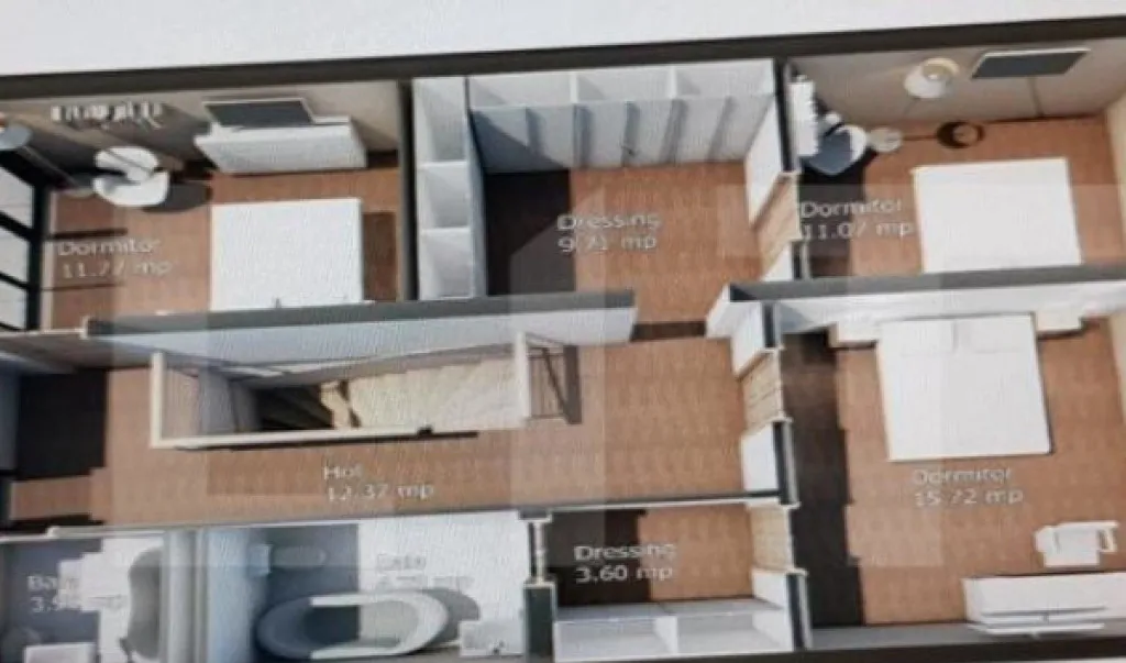 Etaj: 3 dormitoare, 2 băi și 2 balcoane.