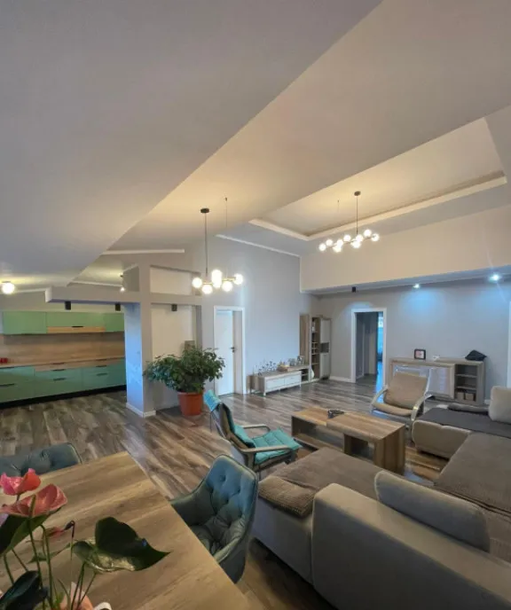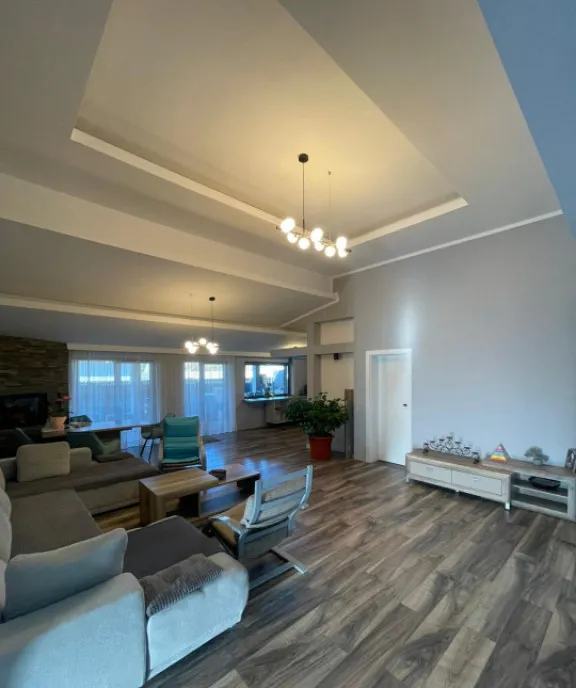 Parter (150 mp): 4 camere spațioase, dintre care 2 dormitoare cu baie proprie și dressing, living cu șemineu, bucătărie modernă și zonă de dining;