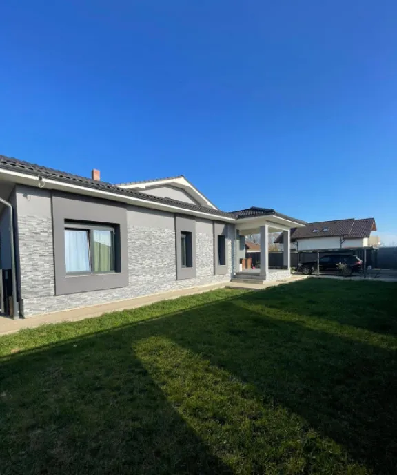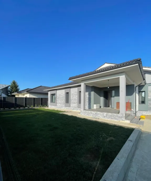 Construcția este realizată integral din cărămidă, beneficiind de o izolație exterioară de 10 cm și acoperiș din țiglă Bramak, garantând durabilitate și eficiență energetică.