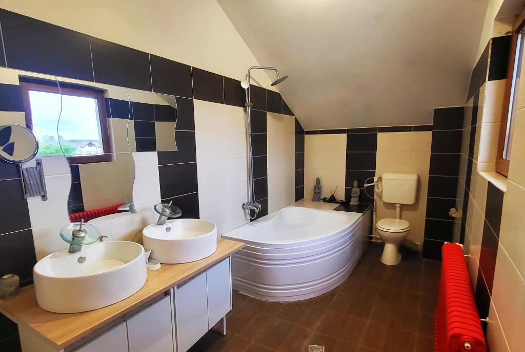 Casa spatioasa cu 8 camere de vanzare in Sibiu - zona Calea Poplacii TABOO Imobiliare propune spre vanzare o casa spatioasa si versatila situata intr-o zona linistita si bine cotata din Sibiu ndash Calea Poplacii in apropierea Pietei Sadu Imobilul are un regim de inaltime S P E M si o suprafata utila de 300 mpu fiind construit pe un teren de 430 mp cu o deschidere generoasa la strada de 24 metri Compartimentare functionala Parter living bucatarie 3 dormitoare 2 holuri 2 bai Etaj 2 dormitoare fiecare cu balcon propriu camera de zi spatii de depozitare Mansarda 2 dormitoare fiecare cu iesire in balcon Subsol pivnita spatioasa ideala pentru depozitare Imobilul dispune suplimentar de 4 balcoane cu o suprafata totala de 20 mp ideale pentru relaxare sau amenajare cu plante decorative Curtea este complet amenajata cu zona de acces pavata pomi fructiferi vita de vie si plante ornamentale Accesul auto se face prin porti automatizate iar in curte pot fi...
