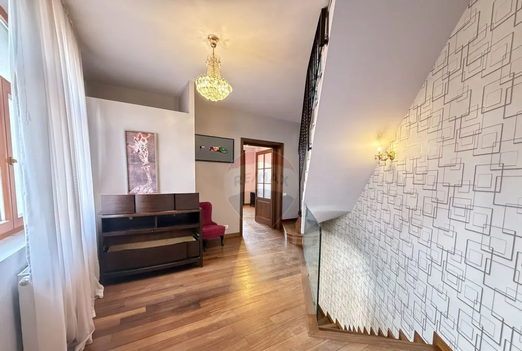 Distribuție spații: 5 camere, dintre care 3 dormitoare, 4 băi, 1 balcon, bucătărie separată și un demisol cu potențial ridicat de utilizare.
