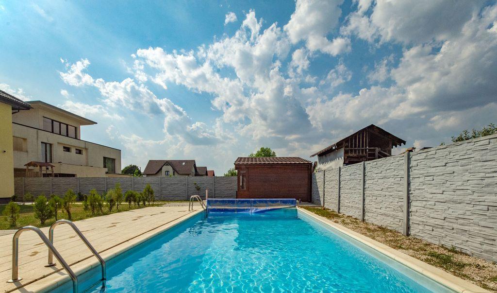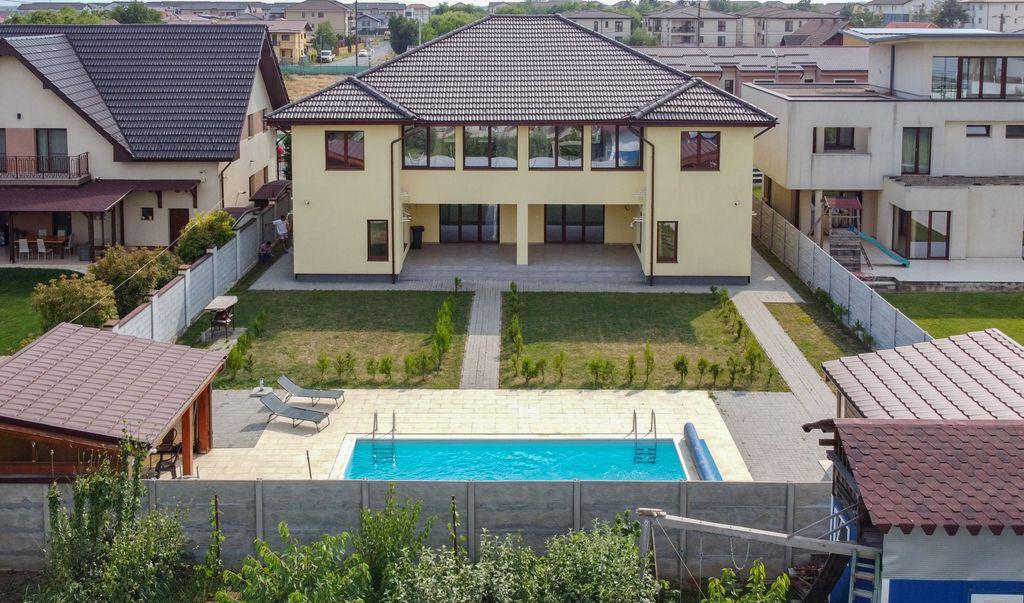 Trimbitasu Estate va propune spre vanzare o casa noua cu o suprafata de 383 mp utili si 914mp teren in zona Ciarda Rosie din Timisoara la doar 20 de minute de centrul orasului Proprietatea se preteaza atat pentru locuit cat si pentru dezvoltarea unui business locatia fiind ideala ca pozitie pentru o cresa after school centru de afaceri sau clinici medicale / laboratoare de analize etc Zona este linistita si dispune de mijloace de transport public in comun in imediata vecinatate cu acces facil spre principalele puncte de interes ale orasului Constructia este integral din caramida porotherm cu termoizolatie exterioara si acoperis din tigla si dispune de toate utilitatile Proprietatea are regim de inaltime P 1 Pod si dispune de 2 garaje 3 terase si piscina incalzita Detalii interior usa intrare PVC parchet laminat usi interioare MDF tamplarie tripan cu protectie UV centrala termica proprie cu calorifere supraveghere video si videointerfon Compartimentarea este urmatoarea Parter Hol de acces dormitor/birou camara bucatarie inchisa camera de zi camera tehnica doua dormitoare - fiecare cu baie proprie baie de servici doua terase dintre care una acoperita si doua garaje Etaj Hol de acces doua dormitoare cu baie si dressinguri proprii si terasa inchisa Curtea dipsune de pisicina incalzita foisor si anexa pentru depozitare Pentru curte exista put cu bazin propriun iar piscina are camera tehnica proprie toate operatiunile fiind mecanizate cu sistem robotizat de curatire apa Casa se vinde cu 0 COMISION pentru cumparator iar pretul este negociabil Pentru detalii si vizionari nu ezitati sa ne contactati