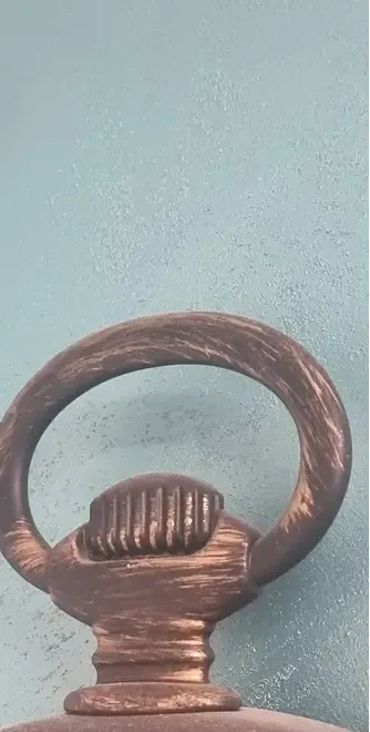 Vand ceas de perete cu design inspirat de ceasurile de buzunar clasice Are cifre romane mari rama cu aspect antichizat bronz patinat si un aer rustic perfect pentru decoruri vintage shabby chic industrial sau clasice