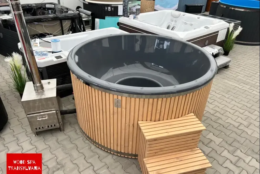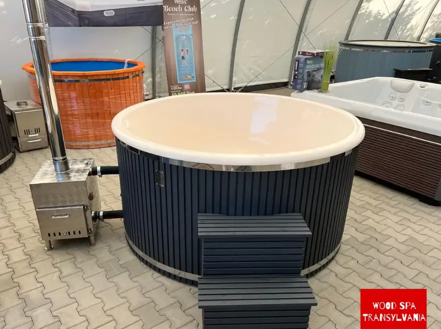 Sistem de Incalzire o Soba externa din inox 22 kW 304 AISI Soba de inalta calitate realizata din inox rezistent cu o putere de 22 kW Aceasta asigura incalzirea rapida a apei si mentinerea unei temperaturi constante oferind o experienta de relaxare placuta si eficienta Ideala pentru utilizarea pe tot parcursul anului indiferent de conditiile meteo o Robinete pentru scurgere Echipat cu robinete pentru scurgere acest ciubar permite o utilizare usoara si confortabila asigurandu-se ca apa este eliminata rapid si eficient dupa fiecare utilizare o 2 inele de otel inoxidabil Pentru o fixare sigura si un design impecabil acest ciubar este dotat cu 2 inele din otel inoxidabil care asigura o structura stabila si un aspect estetic placut