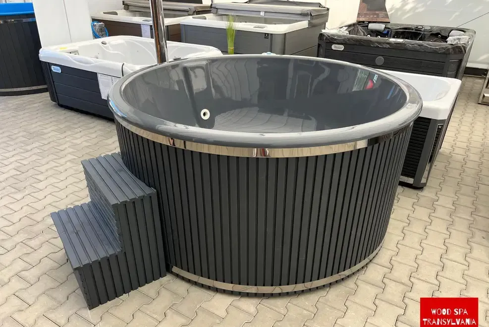 Materiale si Design o Corp ciubar izolat Ciubarul este dotat cu un strat de izolatie termica mentinand astfel temperatura apei constanta si reducand consumul de energie Aceasta caracteristica contribuie la eficienta energetica a ciubarului asigurandu-se ca apa ramane calda pentru o perioada indelungata o Interior cu tehnologia PEARL Interiorul este realizat din fibra de sticla special tratata cu un strat suplimentar de protectie Aceasta tehnologie nu doar ca ofera o protectie sporita dar confera si un aspect modern cu sclipici elegant incorporat Acest design inovator adauga o stralucire subtila si protectie suplimentara combinand functionalitatea cu estetica luxului o Lambriu din molid nordic de 24 mm Calitate A Fabricat din lemn de molid nordic de inalta calitate acest lambriu asigura o durabilitate excelenta si o rezistenta deosebita la intemperii Este de asemenea personalizabil in functie de preferintele tale de culoare adaptandu-se perfect la orice mediu o Scara cu 2 trepte Accesul in ciubar este simplu si confortabil datorita scarii exterioare cu 2 trepte care garanteaza o utilizare sigura si usoara