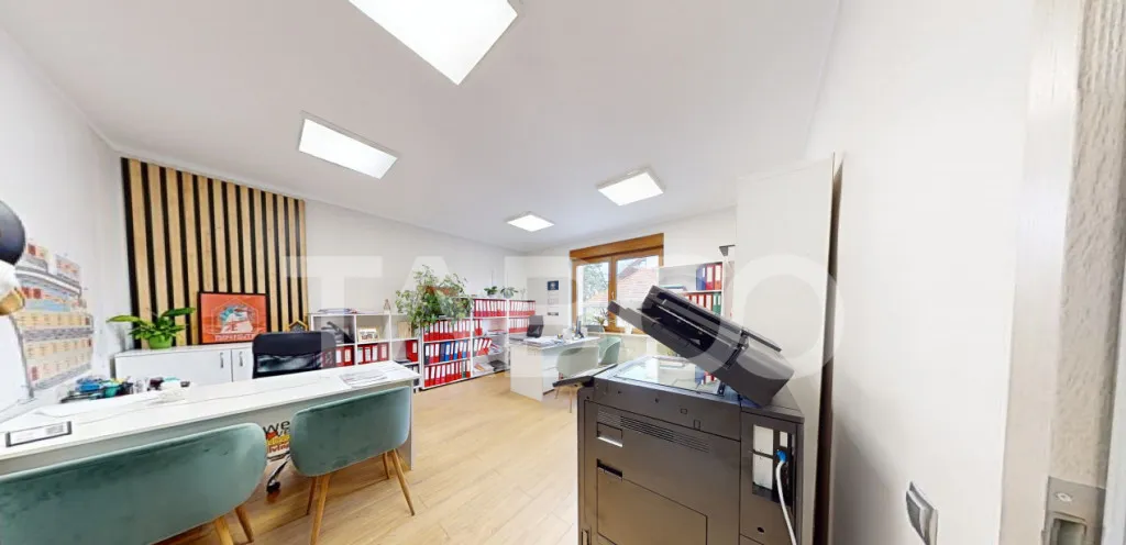 Caracteristici: Regim inaltime: D+P+E+M. Suprafata totala desfasurata: 280 mp, destinație schimbata - functioneaza ca spatiu de birouri, baie pe fiecare nivel al cladirii (la parter sunt 2 bai), sistem de aer conditionat in fiecare incapere, complet mobilat (au fost create numeroase spatii de depozitare, dulapuri, etajere), bucatarie complet mobilata si utilata, loc de luat masa.