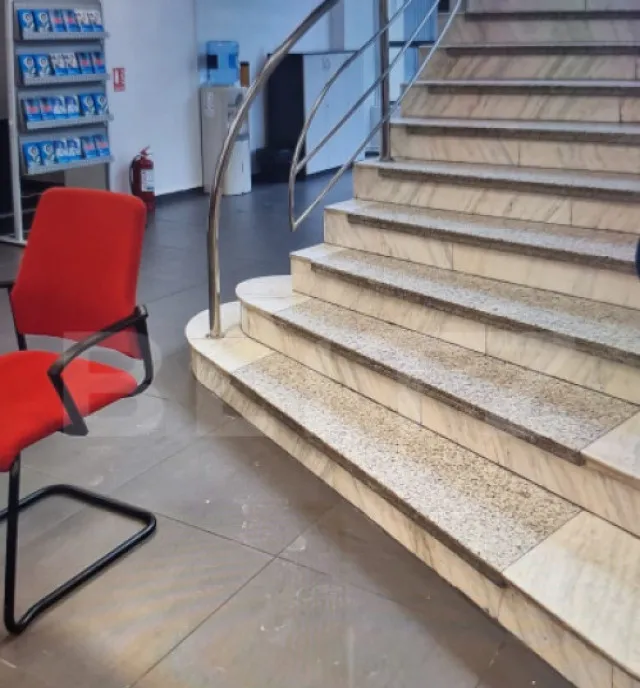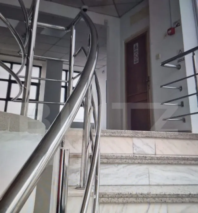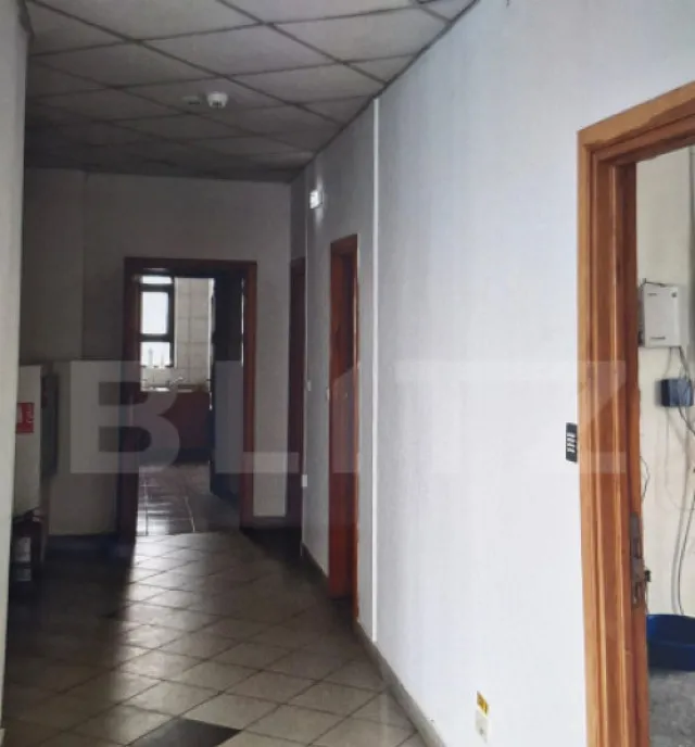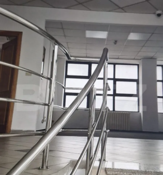 La parter, spațiul este compartimentat în încăperi delimitate pentru birouri, oferind flexibilitate și posibilitatea de recompartimentare în funcție de specificul activității. Etajul 1 este organizat eficient și include o sală de ședințe, bucătărie, baie complet utilată cu duș, sală tehnică, o cameră liberă și grupuri sanitare separate pentru bărbați și femei, asigurând confortul necesar unei activități profesionale susținute.
