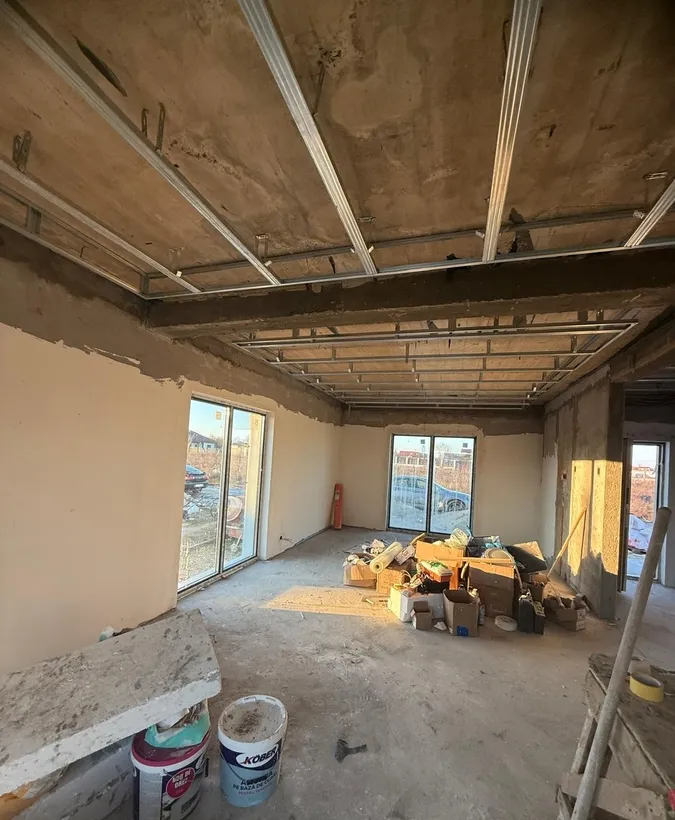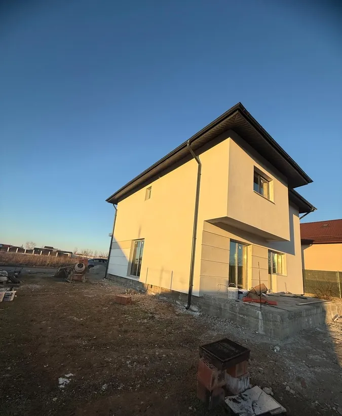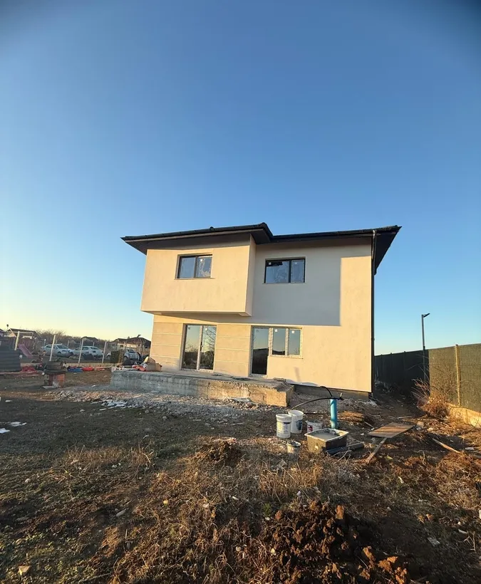 Vila moderna in regim duplex 4 camere finalizata in 2025 - suprafata utila 121 mp si curte privata Va propunem spre vanzare o vila tip duplex aflata intr-un ansamblu restrans de doar 9 case cu un design modern si functional finalizata in anul 2025 Proprietatea beneficiaza de o suprafata utila de 121 mp dispusa pe parter si etaj 1 plus pod oferind spatiu generos pentru confortul intregii familii Compartimentare - Parter living spatios bucatarie baie hol si spatii de depozitare - Etaj 3 dormitoare unul matrimonial cu baie proprie si dressing baie hol - Pod cu acces din interior ideal pentru depozitare Dotari si finisaje de calitate superioara - Centrala termica proprie de 25 kW - Incalzire prin pardoseala si calorifere pentru un confort termic optim - Tamplarie PVC cu geam tripan - eficienta termica si fonica sporita - Usi interioare Porta Doors sau Pinum - Obiecte sanitare Ideal Standard gama Premium sau echivalent -Placari ceramice moderne si ...