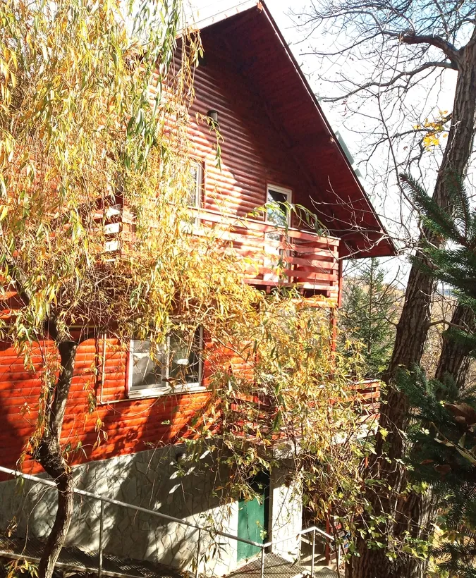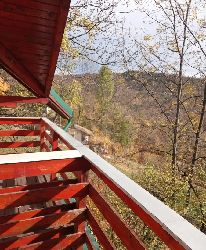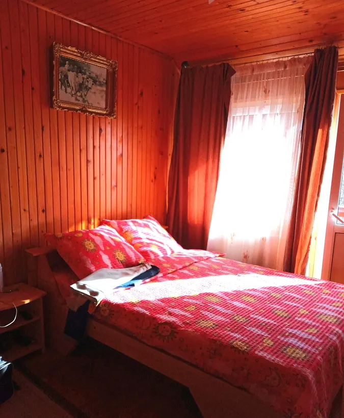 Vila beton + lemn izolata, mobilata si utilata, 5 dormitoare, living, 2 bucatari, 3 gs., 3 terase, 2 balcoane, curte cu pomi fructiferi, parcare, gratar, zona linistita, exceleta pentru casa de vacanta sau pensiune,