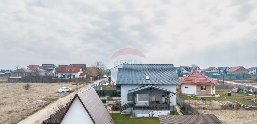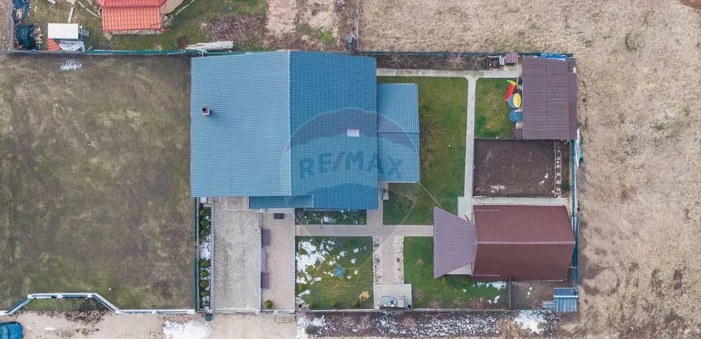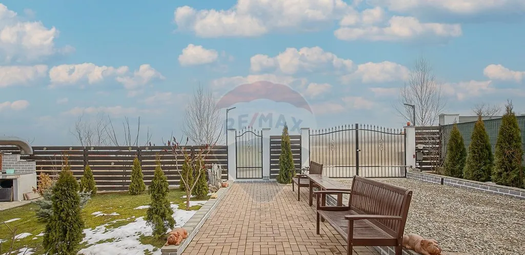 Suprafață totală a terenului este de 650 mp. Curtea este complet amenajată, cu gazon, pomi fructiferi, arbuști ornamentali și spațiu verde îngrijit.