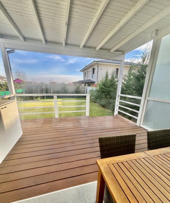 Vila individuala spatioasa si bine compartimentata situata vis-a-vis de padure Renovata in 2025 cu finisaje de calitate si cu atentie deosebita atat la detaliile tehnice cat si la cele de design La parter regasim un hol de intrare generos cu inaltime dubla o zona open space ce cuprinde livingul dinnningul si bucataria precum si o terasa exterioara de 30 mp garajul si camera tehnica Cele 3 dormitoare au suprafete generoase fiecare cuprinzand doua zone cea de zi situata la etaj si cea de noapte situata la mansarda Casa este racordata la toate utilitatile gaz curent apa canalizare internet/TV Curtea este amenajata cu gazon inclusiv instalatie de irigatie noua Direct proprietar