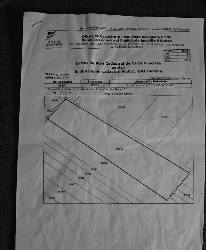 2. 23781 m2, nr. cadastru 66743, tarla 20, parcela 49/7/11 situat langa cimitir 3 comuna Berceni. Strada Primaverii. Pret 15 euro/m.